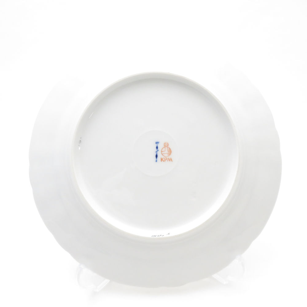 美品 KPM BERLIN KPMベルリン ロカイユ フラワーブーケ 中皿 19cmプレート 花 蝶 金彩 ケーキ デザート SU8317U 【中古】