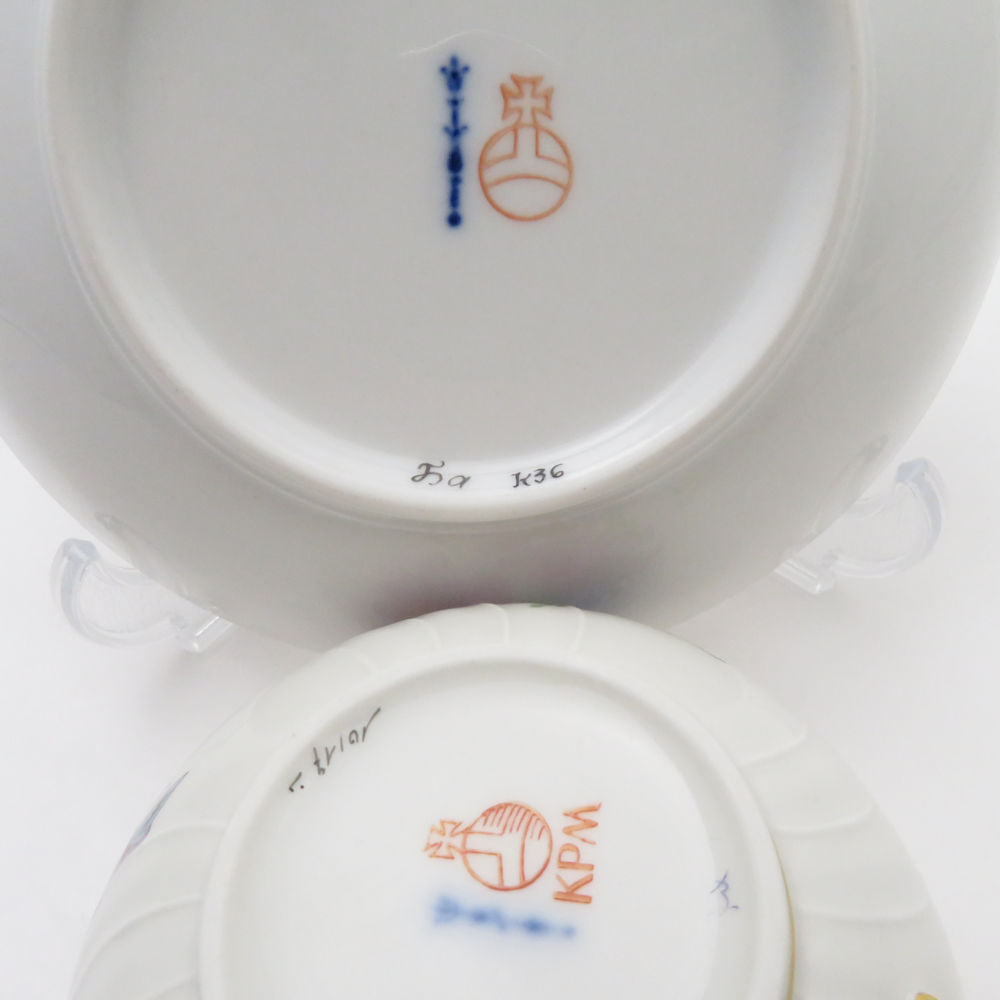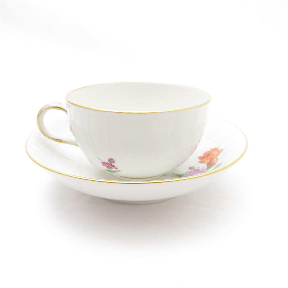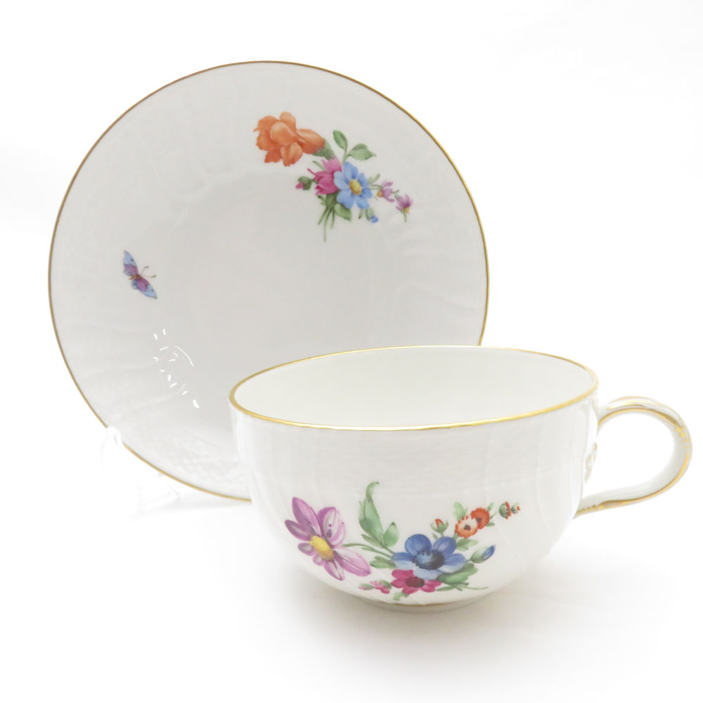美品 KPM BERLIN KPMベルリン Neuosier ノイオジェール ティーカップ&ソーサー 紅茶 フラワーブーケ 花 蝶 金彩 SU8321U 【中古】
