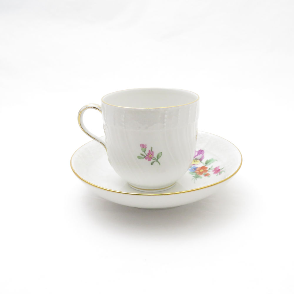 美品 KPM BERLIN KPMベルリン Neuosier ノイオジェール コーヒーカップ&ソーサー 珈琲 フラワーブーケ 花 蝶 金彩 SU8324U 【中古】