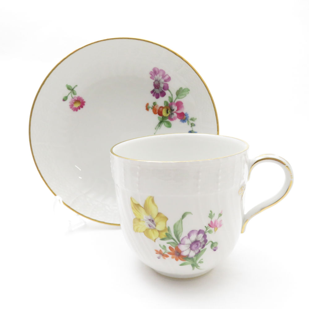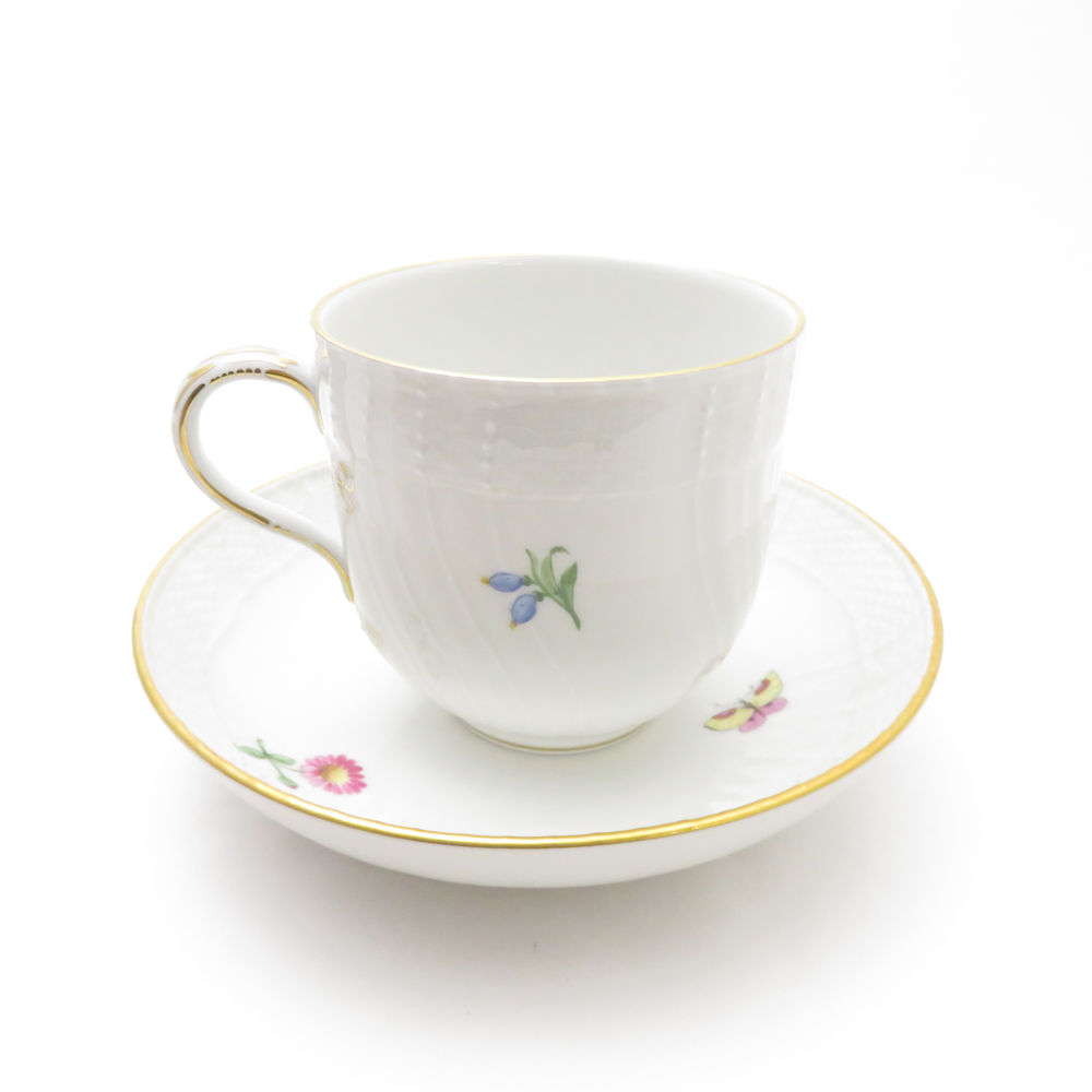 美品 KPM BERLIN KPMベルリン Neuosier ノイオジェール コーヒーカップ&ソーサー 珈琲 フラワーブーケ 花 蝶 金彩 SU8327U 【中古】