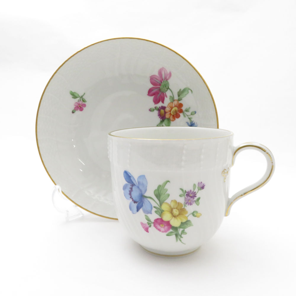 美品 KPM BERLIN KPMベルリン Neuosier ノイオジェール コーヒーカップ&ソーサー 珈琲 フラワーブーケ 花 蝶 金彩 SU8328U 【中古】