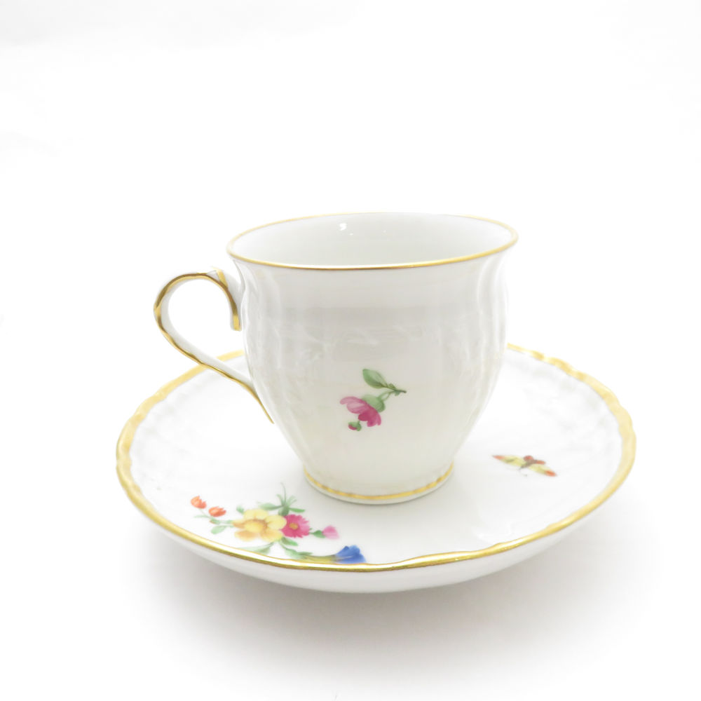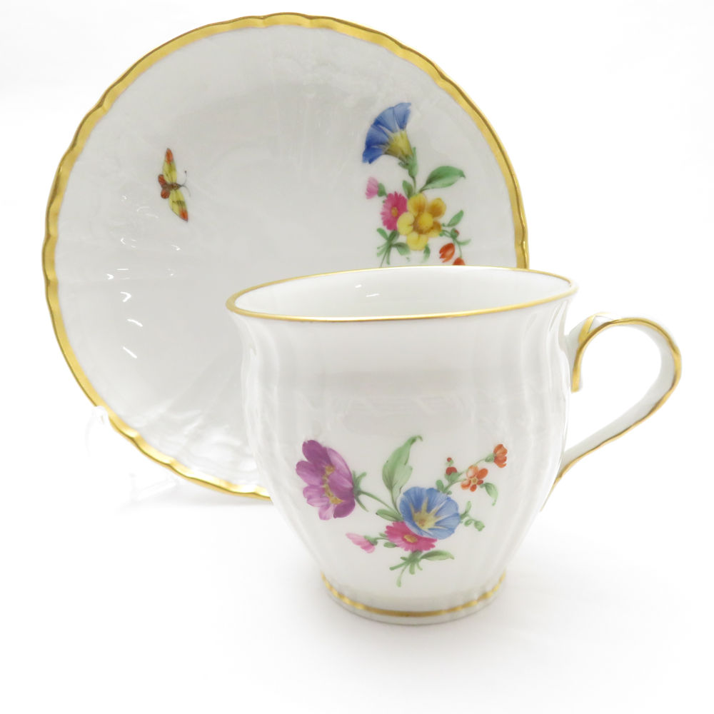 美品 KPM BERLIN KPMベルリン ロカイユ フラワーブーケ コーヒーカップ&ソーサー 珈琲 花 蝶 金彩 SU8330U 【中古】