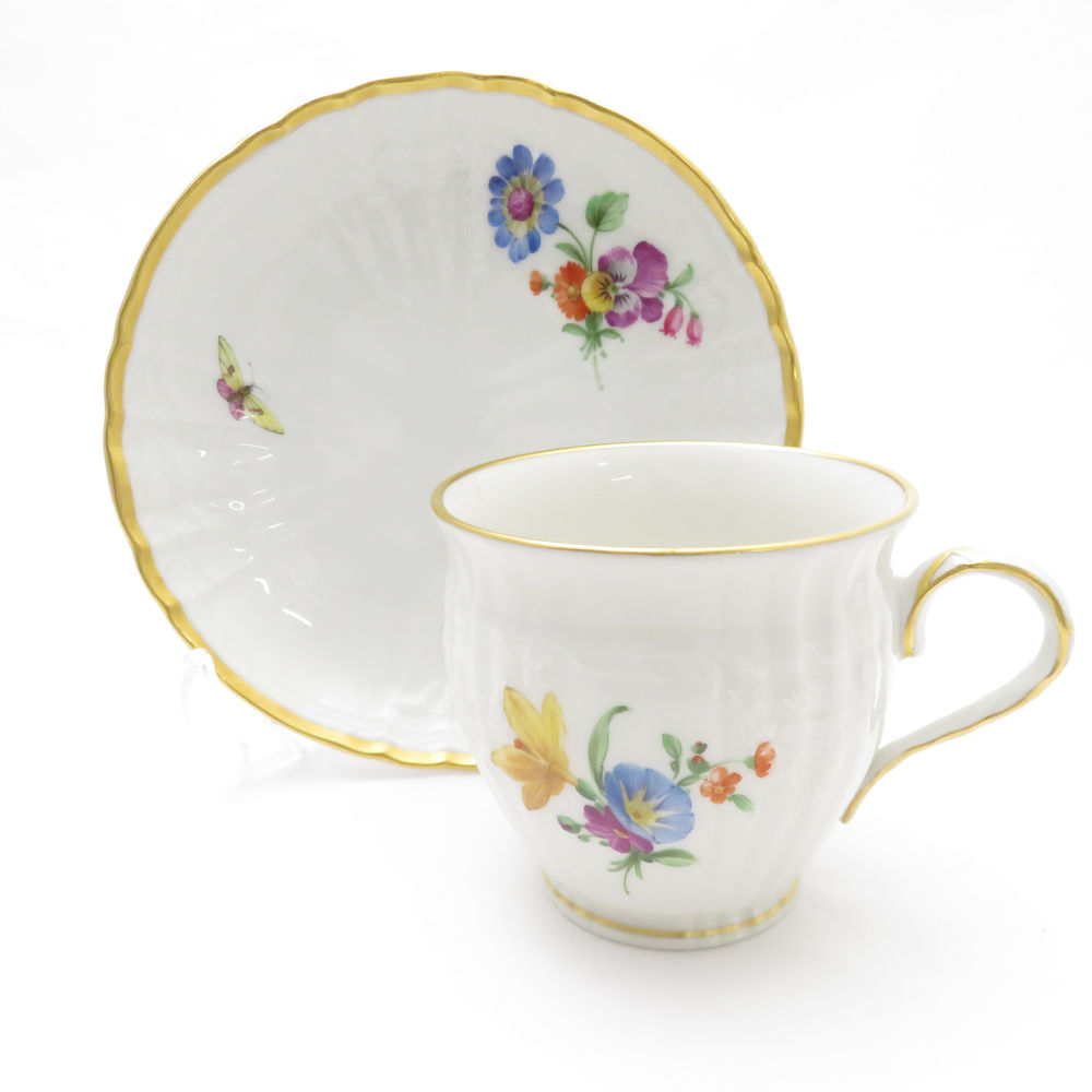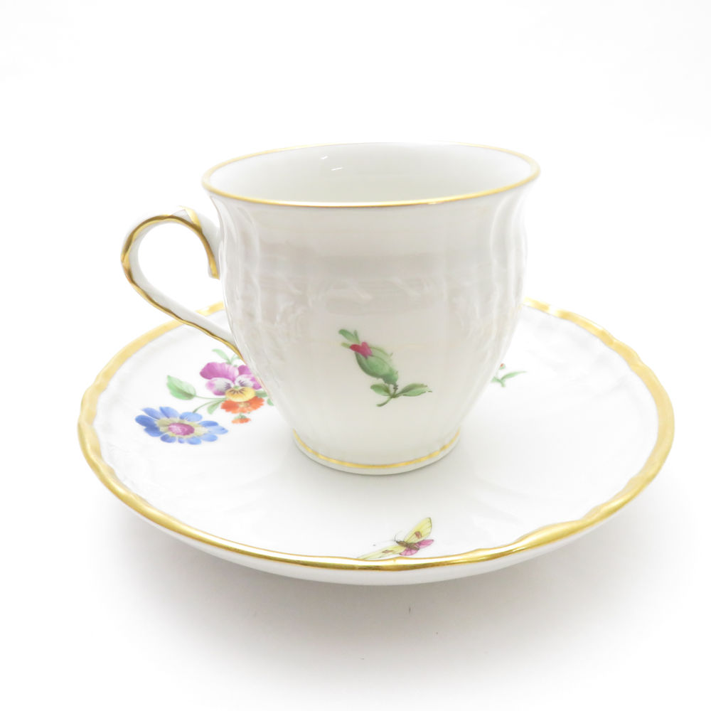 美品 KPM BERLIN KPMベルリン ロカイユ フラワーブーケ コーヒーカップ&ソーサー 珈琲 花 蝶 金彩 SU8337U 【中古】