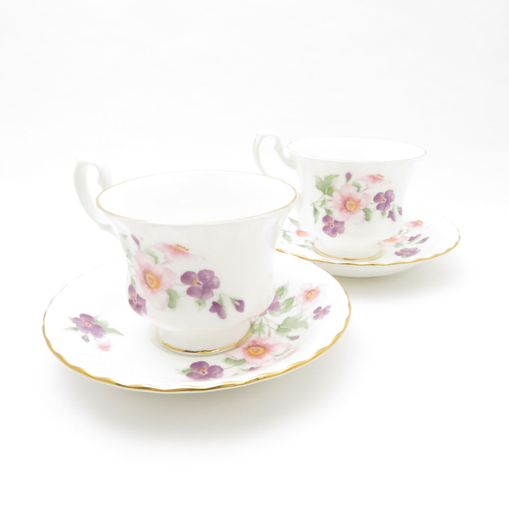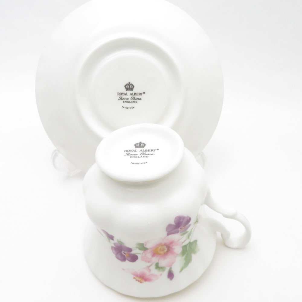 美品 ROYAL ALBERT ロイヤルアルバート ティーカップ&ソーサー 2客 ペア TAVISTOCK SY9431J 【中古】