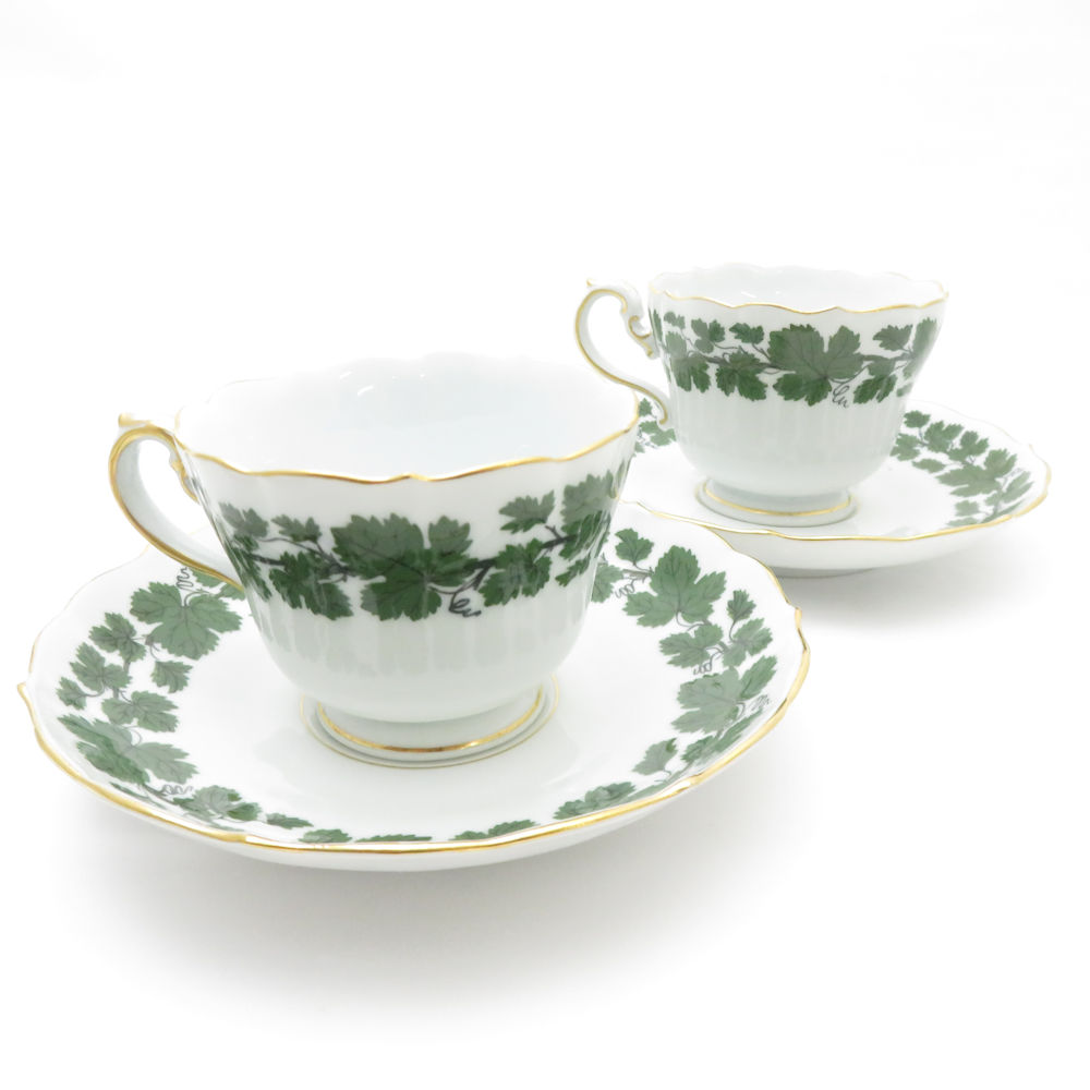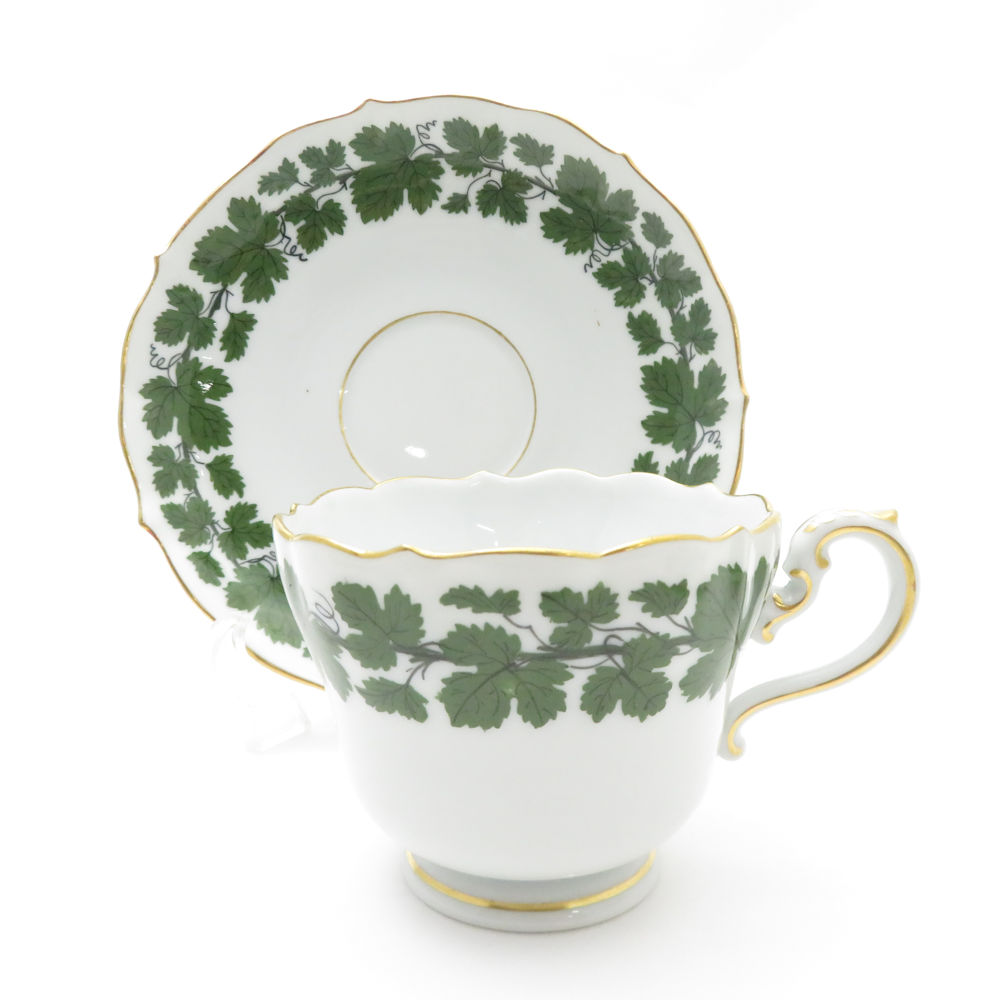 美品 MEISSEN マイセン ワインリーフ カップ&ソーサー 中皿 4点 トリオ 18cmプレート ティー コーヒー SU8439F 【中古】