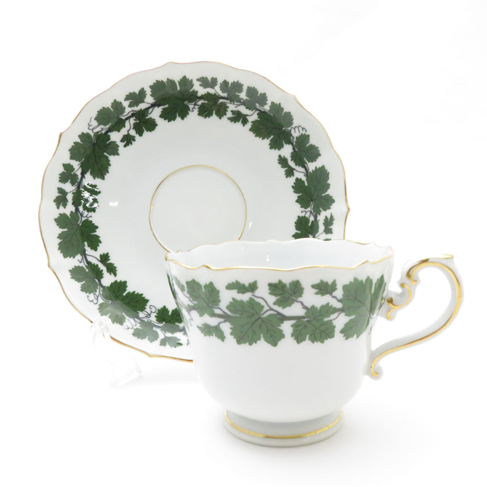 美品 MEISSEN マイセン ワインリーフ カップ&ソーサー 中皿 4点 トリオ 18cmプレート ティー コーヒー SU8441F 【中古】