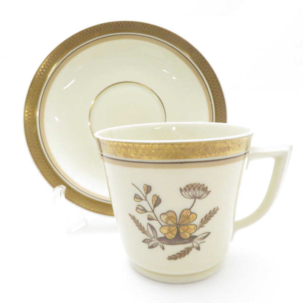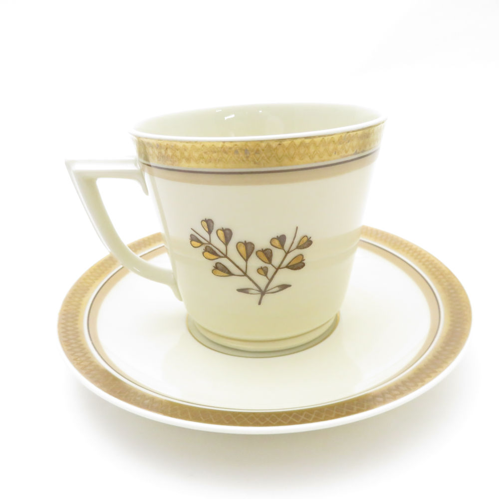 美品 ROYAL COPENHAGEN ロイヤルコペンハーゲン ゴールデンクローバー カップ&ソーサー 中皿 2点 トリオ デザートプレート パン ケーキ SU8446F 【中古】