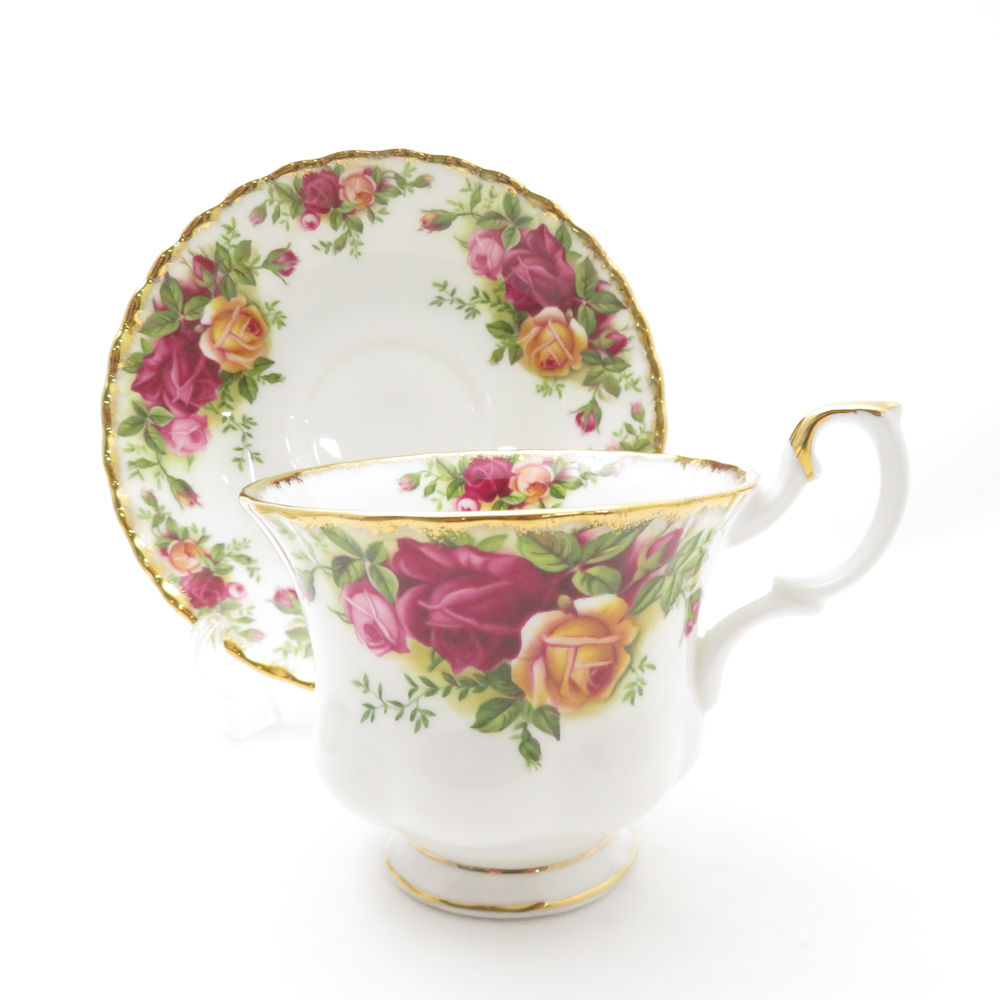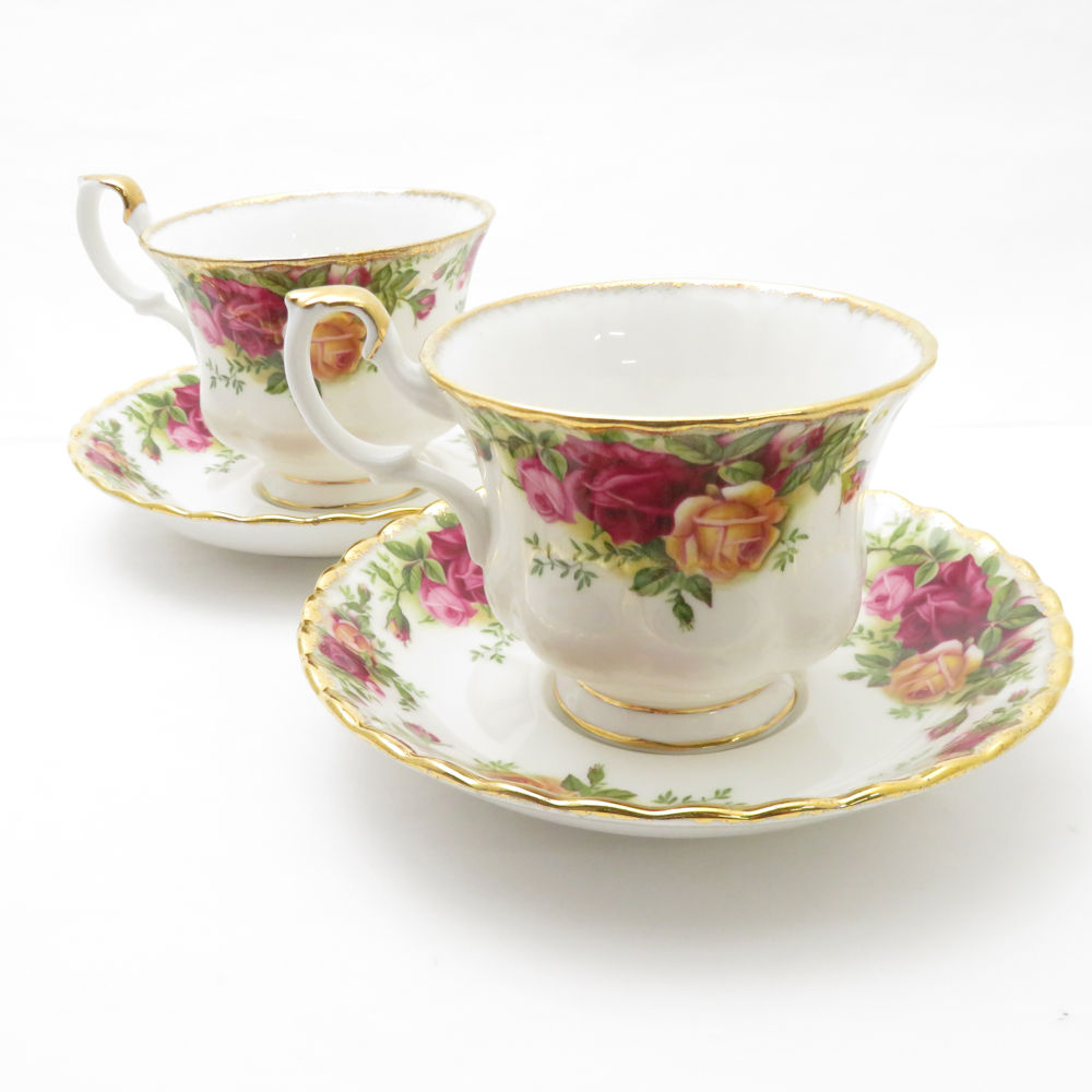 美品 ROYAL ALBERT ロイヤルアルバート オールドカントリーローズ ティーカップ&ソーサー 2客 ペア SY10753V 【中古】