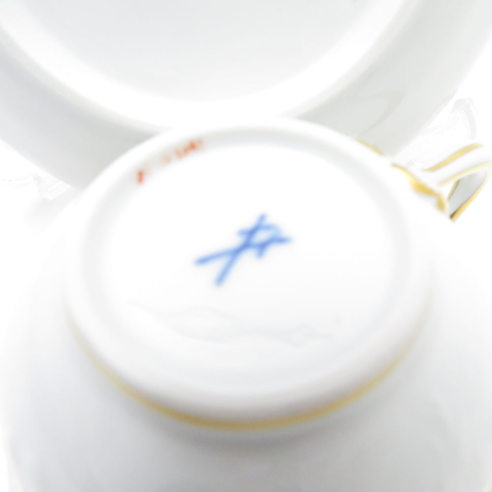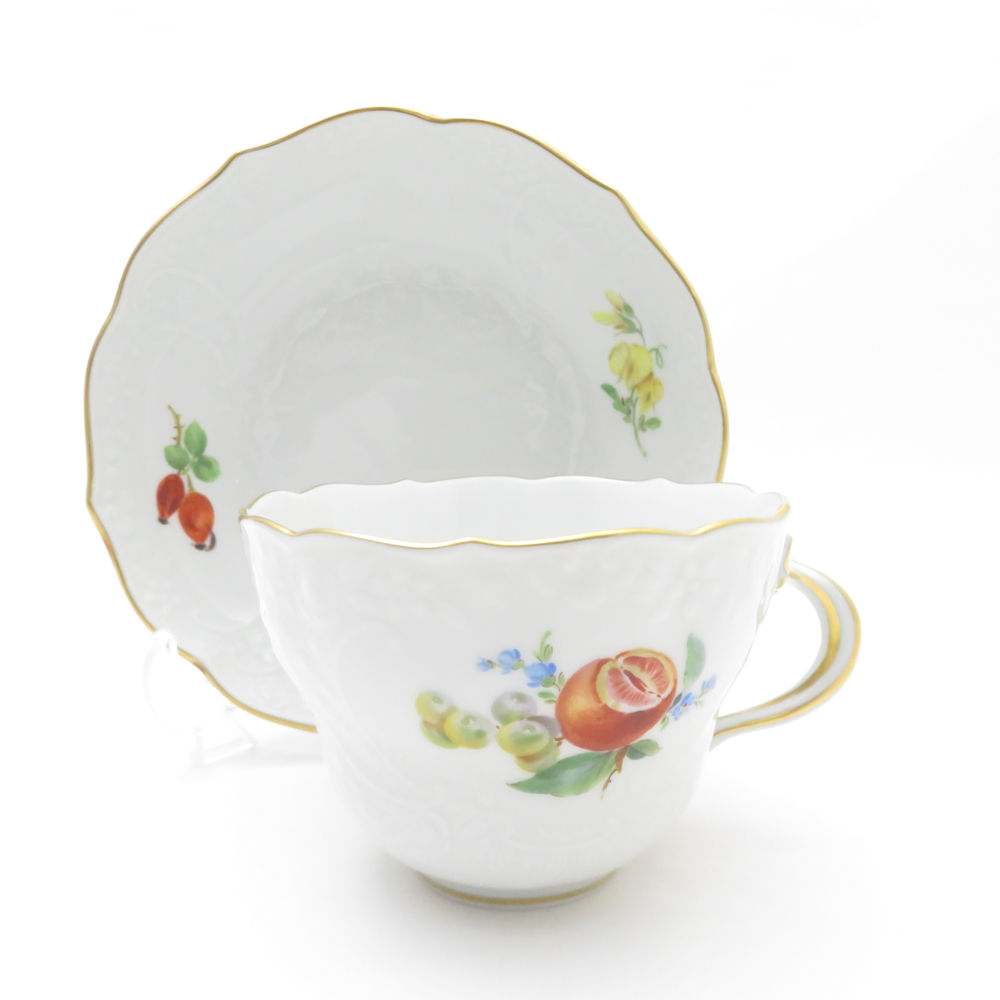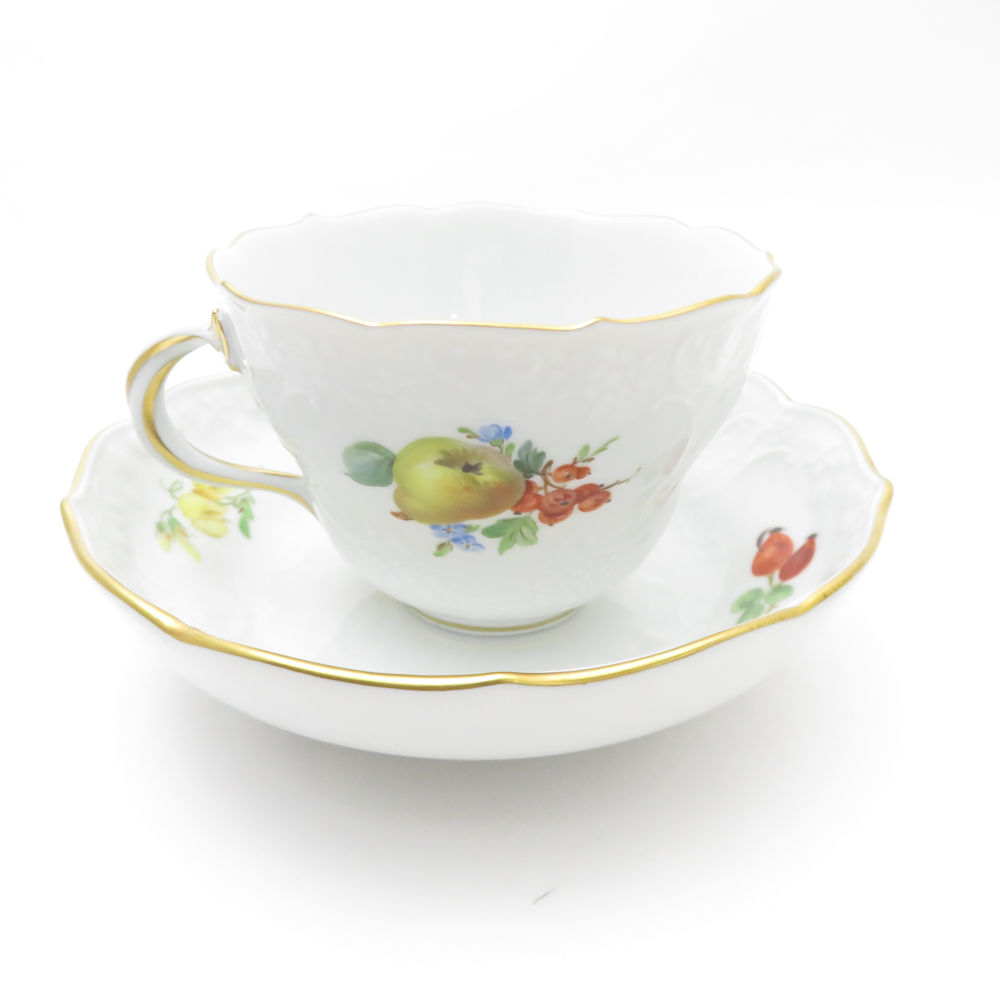 美品 MEISSEN マイセン 果物文様 (240210)3562 カップ&ソーサー フルーツ レリーフ ティー コーヒー 金彩 SU8677H 【中古】