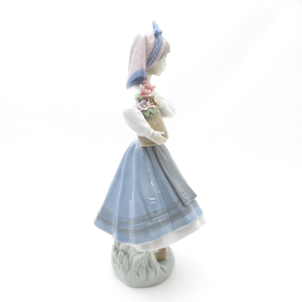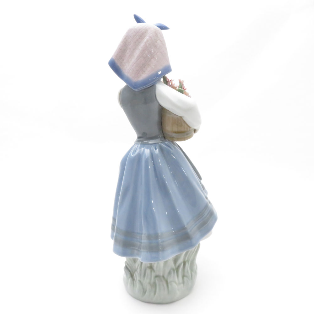 難有 LLADRO リヤドロ 1416 大事な花かご フィギュリン フラワー 置物 陶器人形 オブジェ SU8567C 【中古】