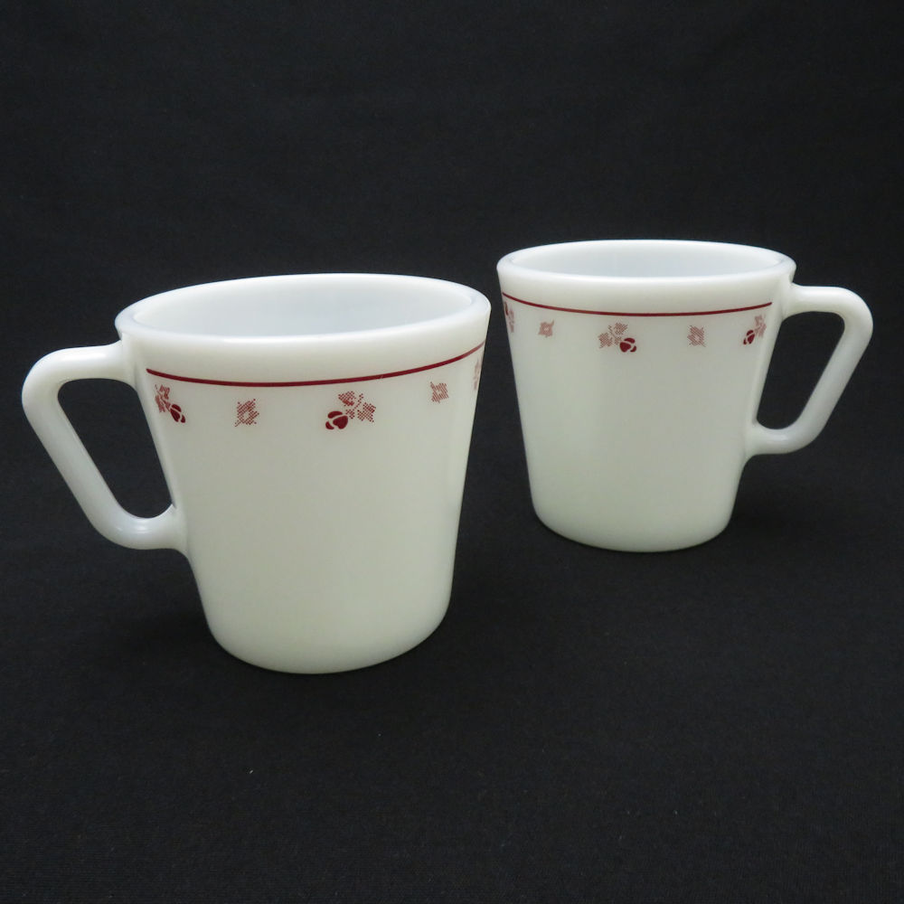 PYREX パイレックス バーガンディ ローズ マグカップ 2点 ミルクガラス ペア コップ 300ml オールド コーニング SY10247A2 【中古】