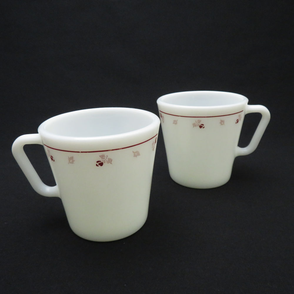 PYREX パイレックス バーガンディ ローズ マグカップ 2点 ミルクガラス ペア コップ 300ml オールド コーニング SY10248A2 【中古】
