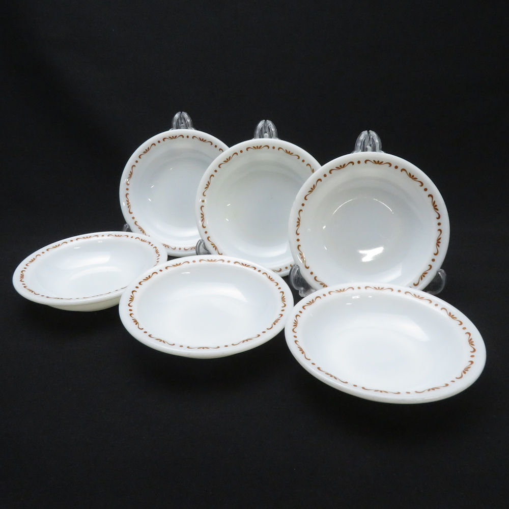 PYREX パイレックス カッパーフィリグリー 小皿 6枚 ミルクガラス 12cmプレート セット オールド コーニング SY10250A3 【中古】