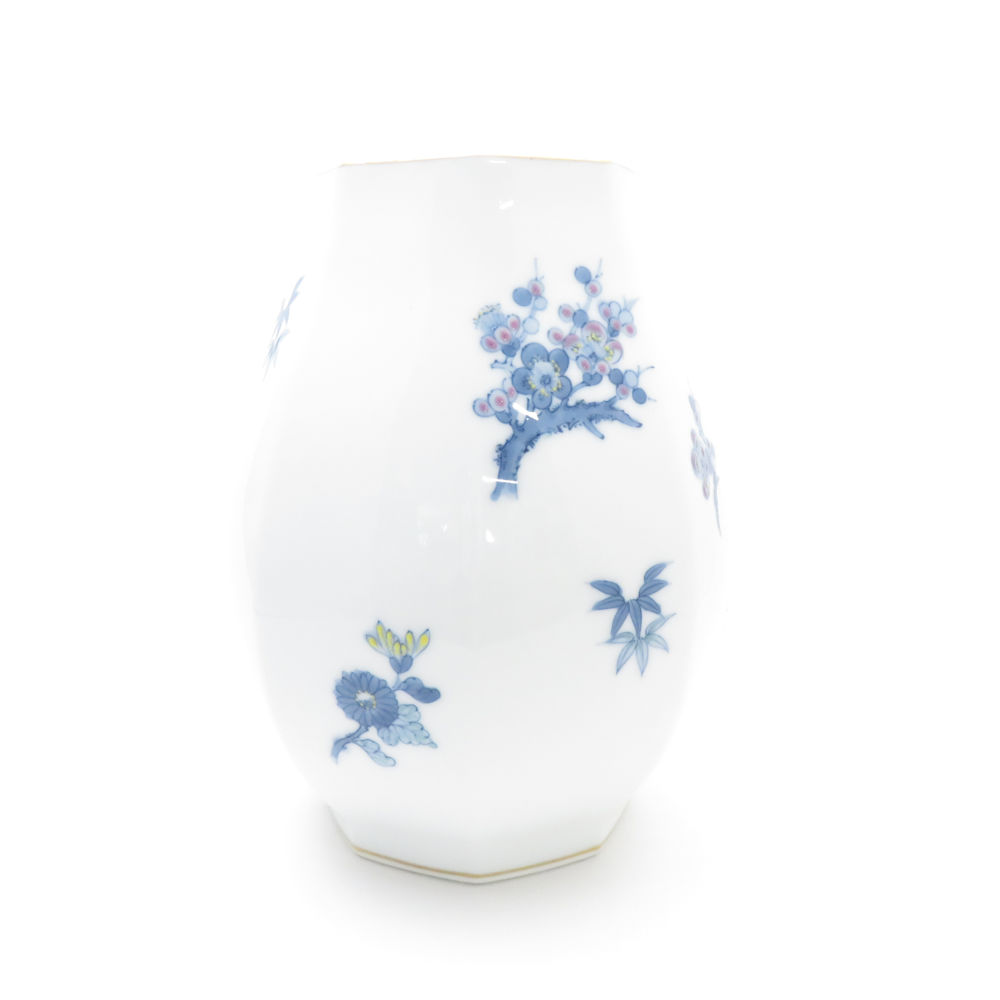 OKURA 大倉陶園 四君子の図 花瓶 八角 花びん フラワーベース SY11078G2 【中古】