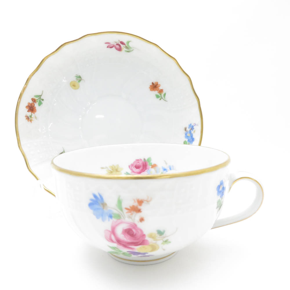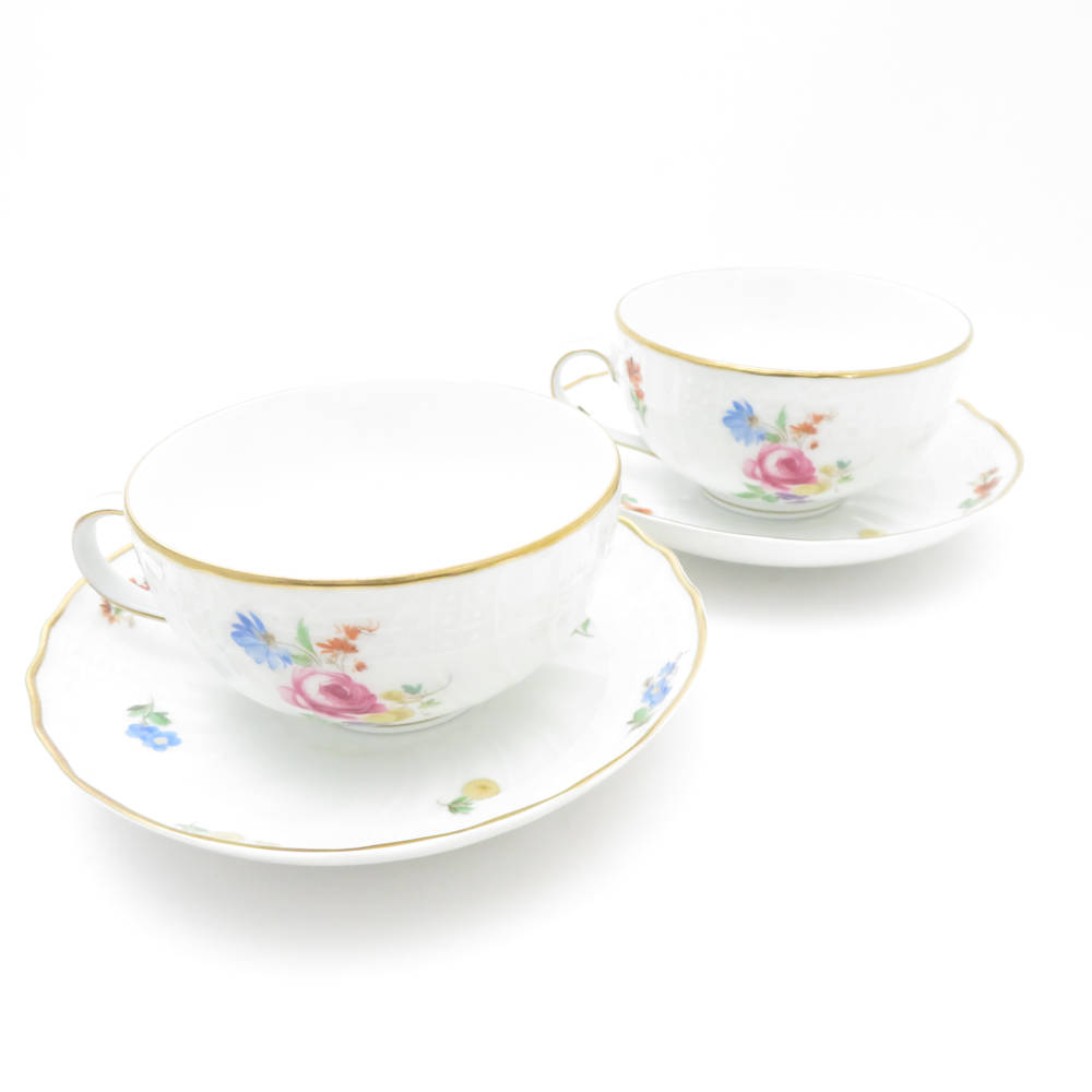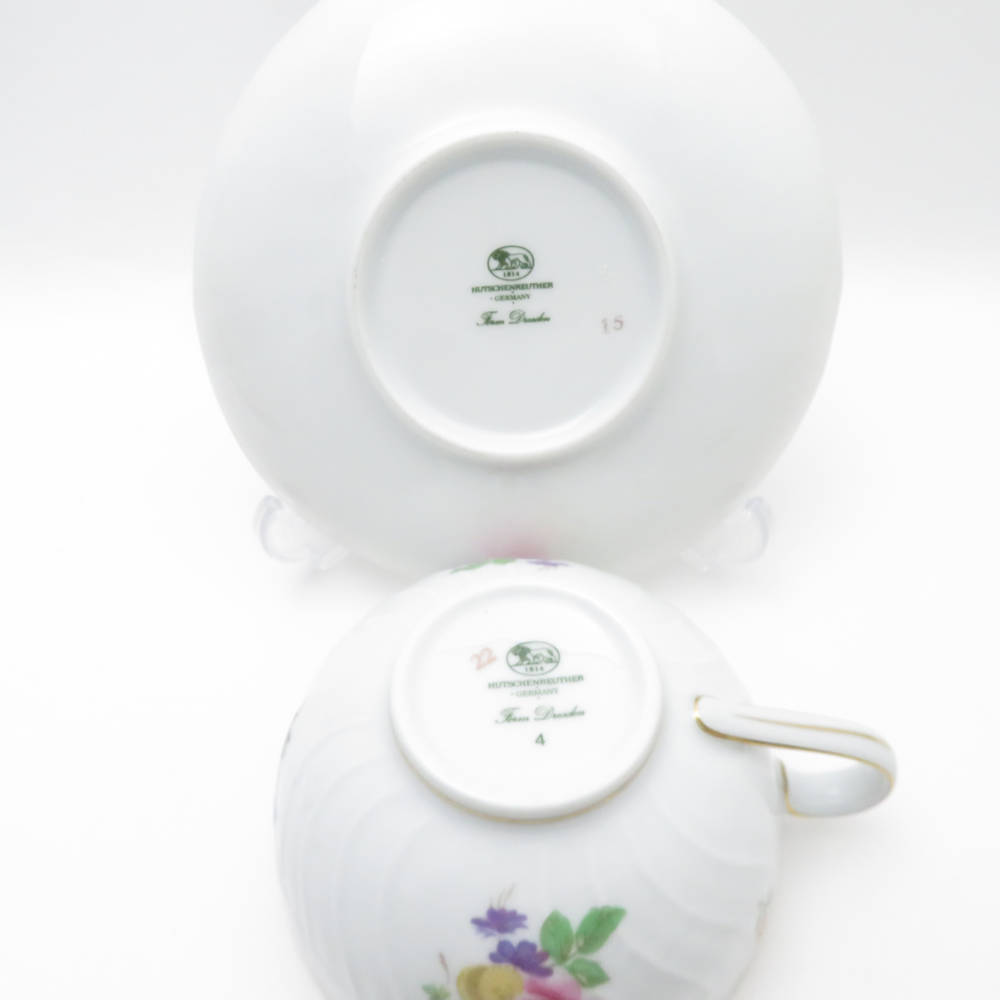 美品 HUTSCHENREUTHER フッチェンロイター フォームドレスデン ティーカップ&ソーサー 2客 ペア 金彩 花柄 SU10032R1 【中古】