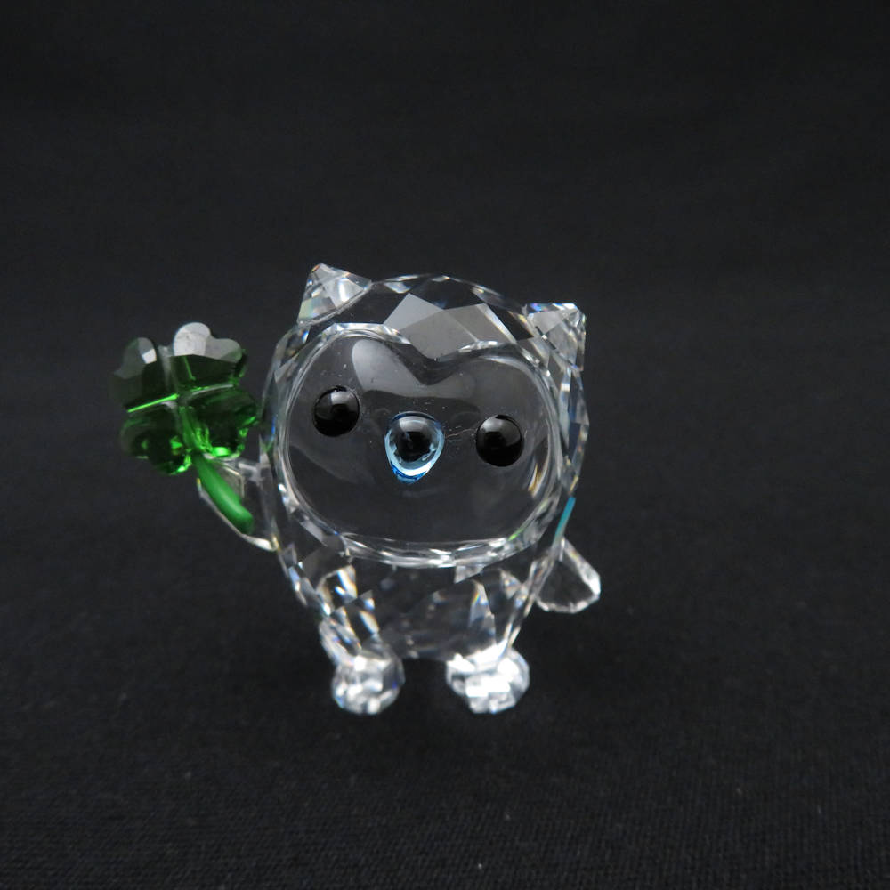 美品 SWAROVSKI スワロフスキー フクロウ HOOT-I'M SO LUCKY 四つ葉のクローバー 5270265 フィギュリン 1点 置物 インテリア ST434 【中古】