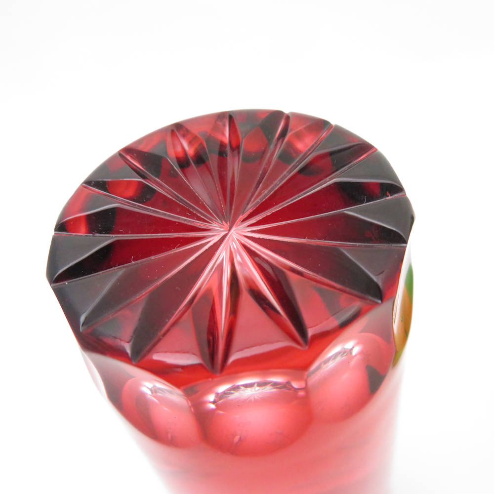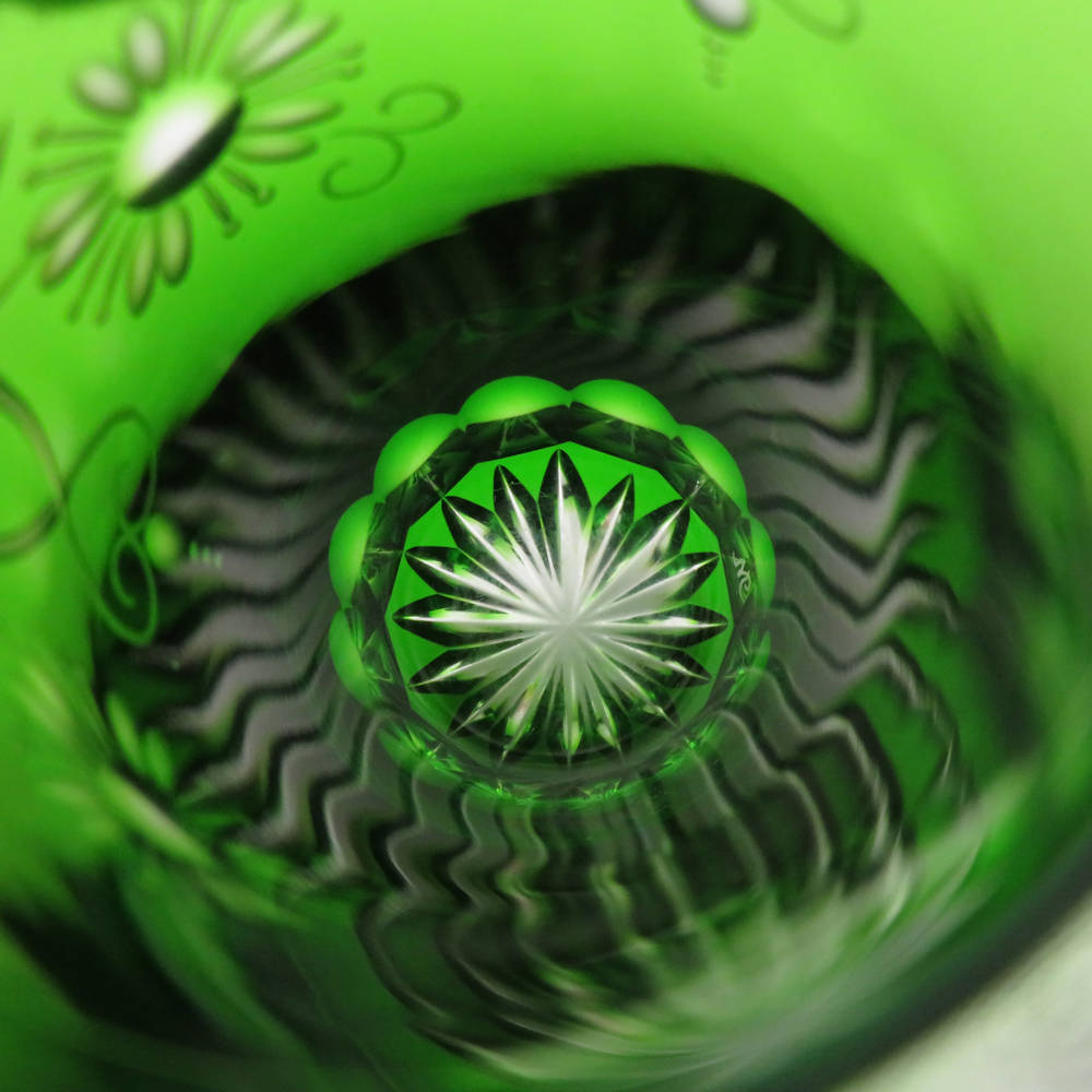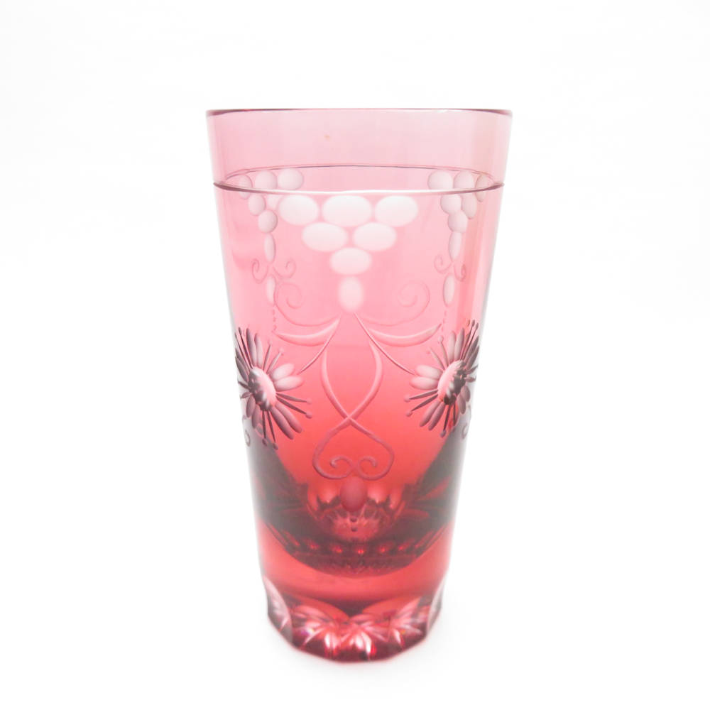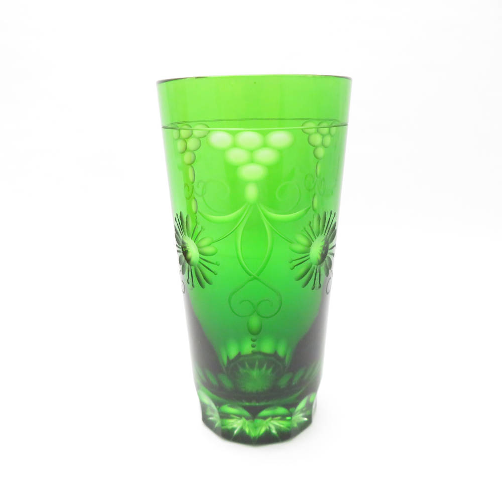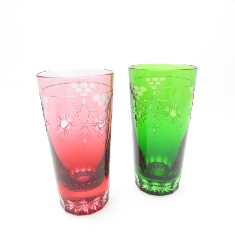 美品 Meissen Crystal マイセンクリスタル 色被せ クリサンテーム グリーン/レッド タンブラー 2点 クリスタル セット グラス オールドファッション SU11327L1 【中古】