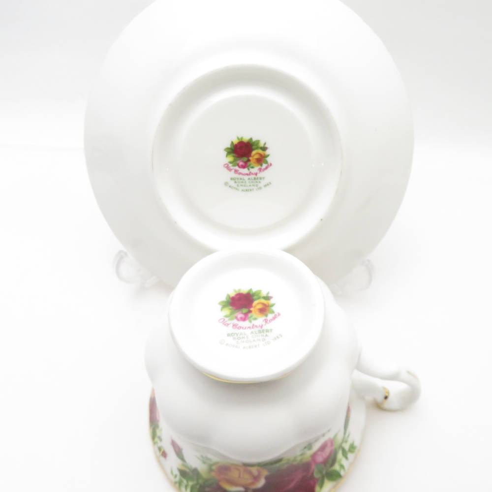 美品 ROYAL ALBERT ロイヤルアルバート オールドカントリーローズ ティーカップ&ソーサー 中皿 2点 セット デザートプレート ケーキ 20cm SY11649A1 【中古】