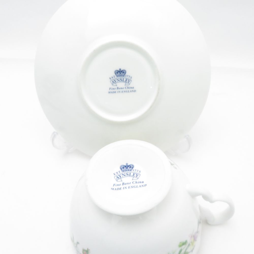 美品 Aynsley エインズレイ ワイルドチューダー ティーカップ&ソーサー 2客 ペア 花柄 フラワー 金彩 紅茶 英国 SU11171B1 【中古】