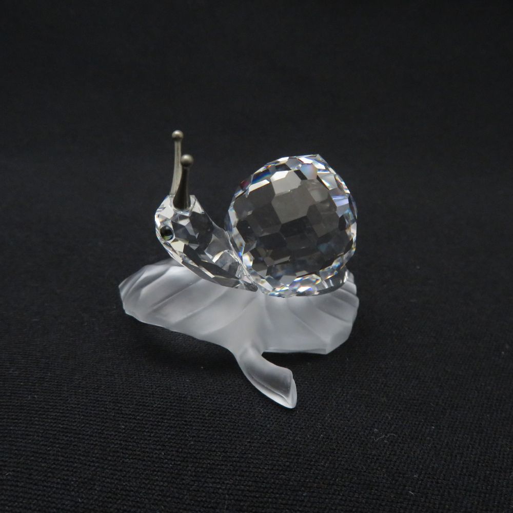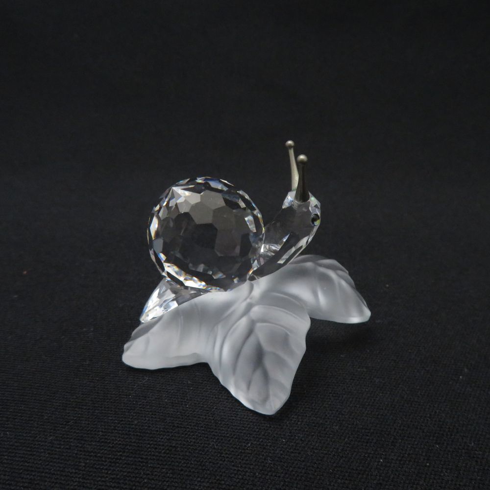 美品 SWAROVSKI スワロフスキー ブドウの葉の上のカタツムリ 2004年 フィギュリン クリスタル オブジェ 置物 クリア ぶどう かたつむり SU11718B2 【中古】