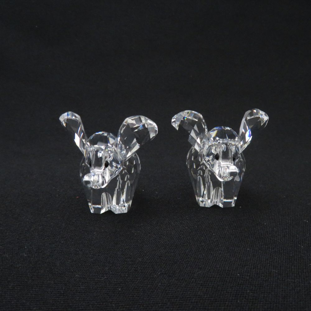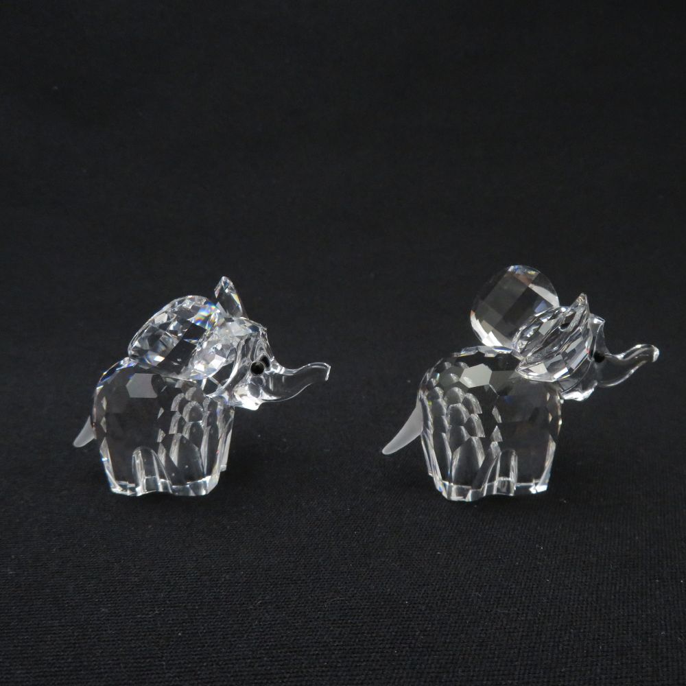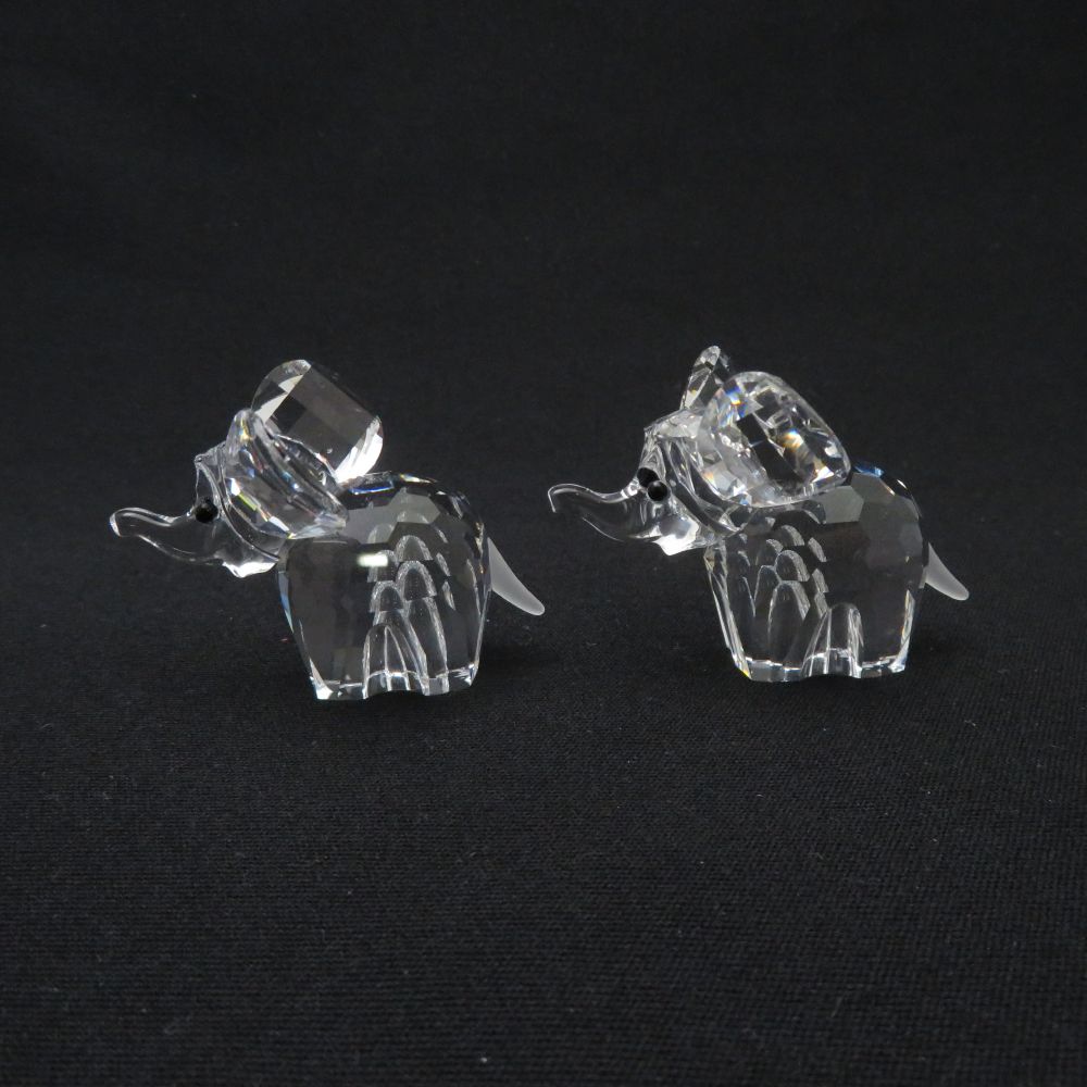 美品 SWAROVSKI スワロフスキー ゾウ Mini エレファント フィギュリン 2点 クリスタル オブジェ 象 置物 クリア ミニオーナメント SU11719B2 【中古】