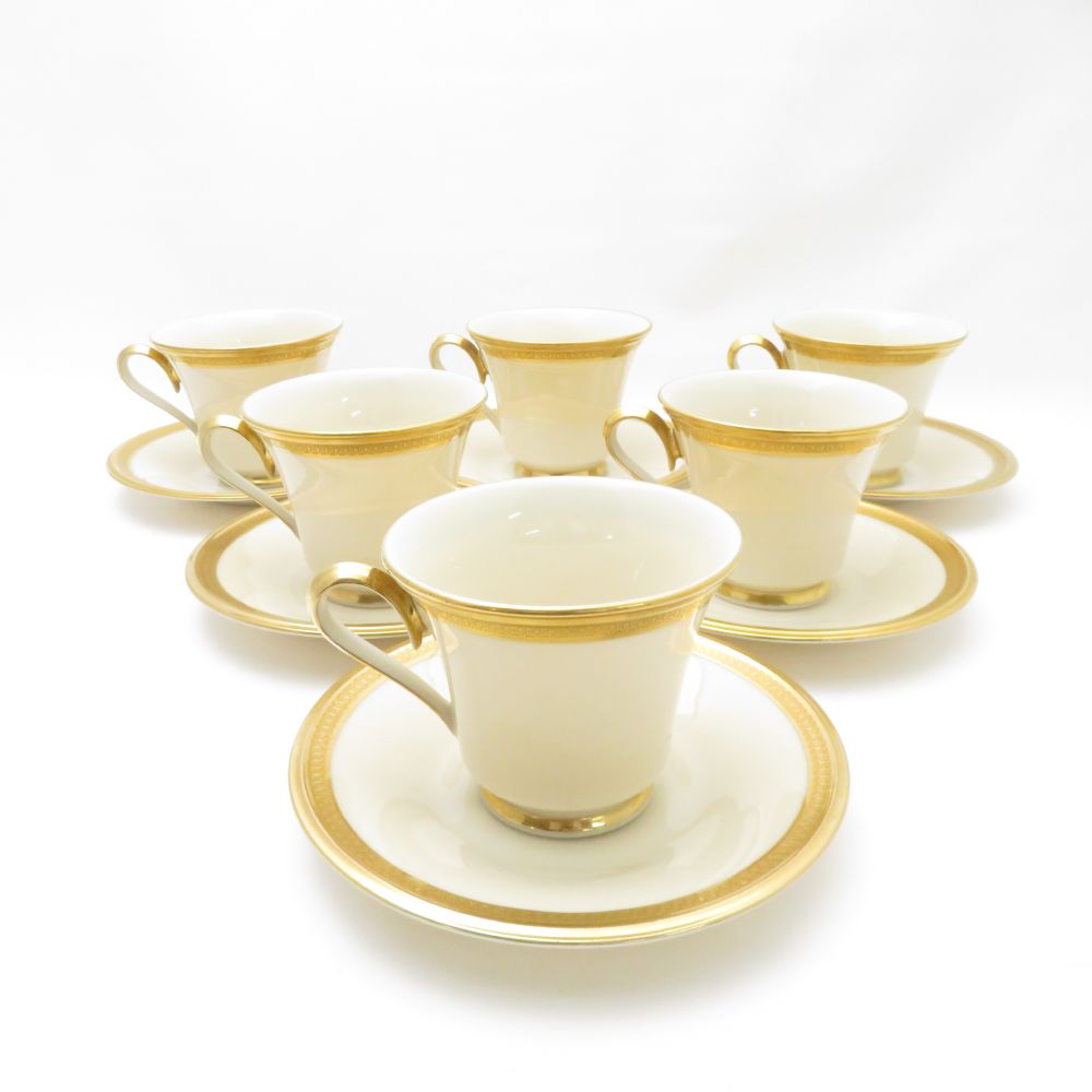 美品 LENOX レノックス ARISTOCRAT コーヒーカップ&ソーサー 6客 セット SY12431F2 【中古】