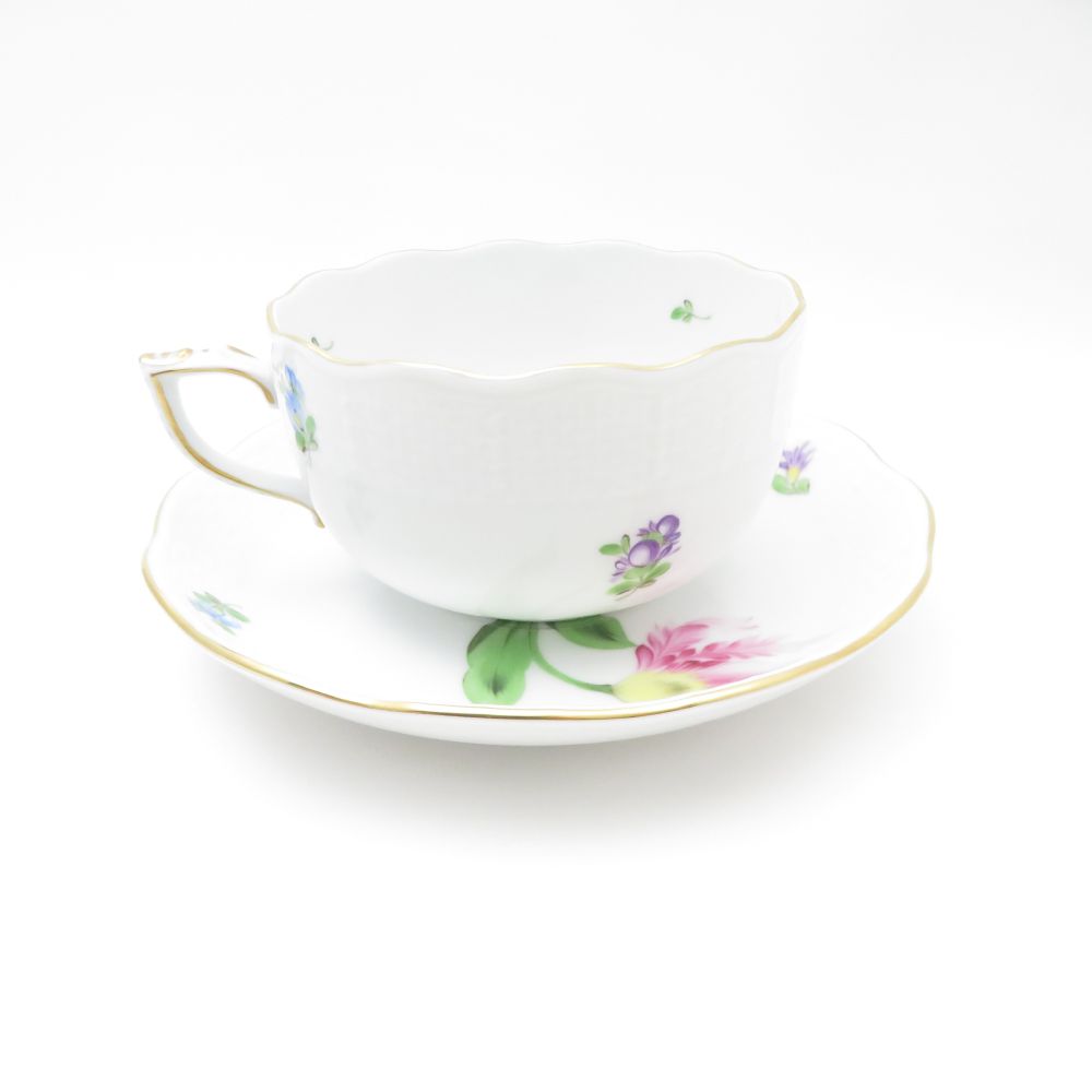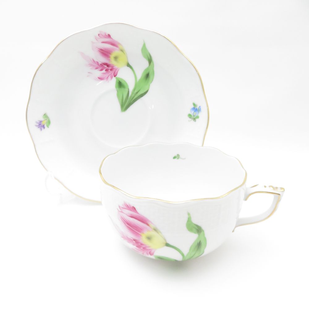 美品 Herend ヘレンド バコニーの春 PDB 724 ティーカップ&ソーサー 1客 キティピンク 金彩 白磁 ハンガリー SU11990S2 【中古】