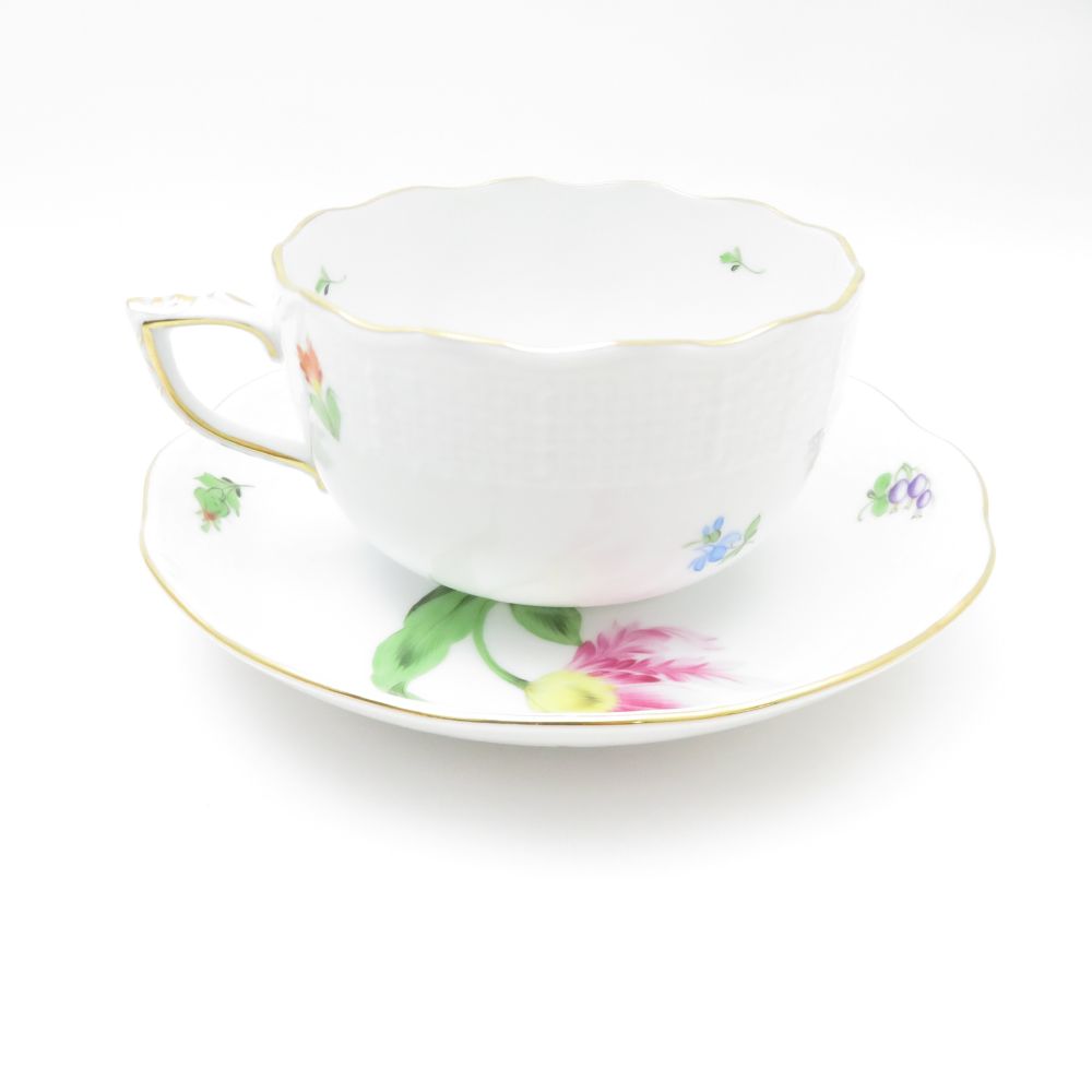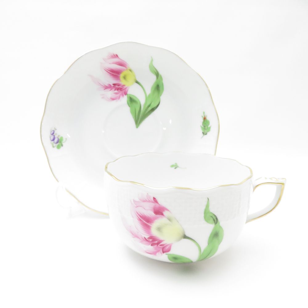 美品 Herend ヘレンド バコニーの春 PDB 724 ティーカップ&ソーサー 1客 キティピンク 金彩 白磁 ハンガリー SU11992S2 【中古】