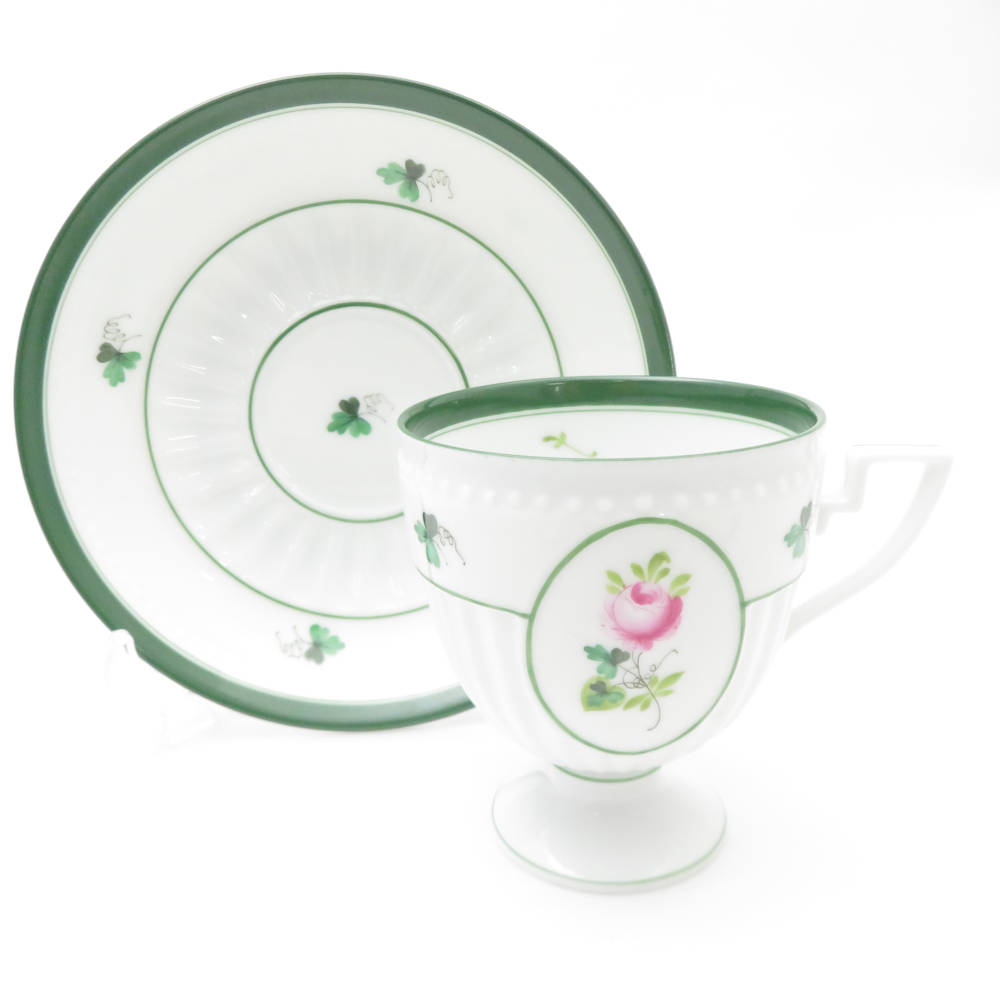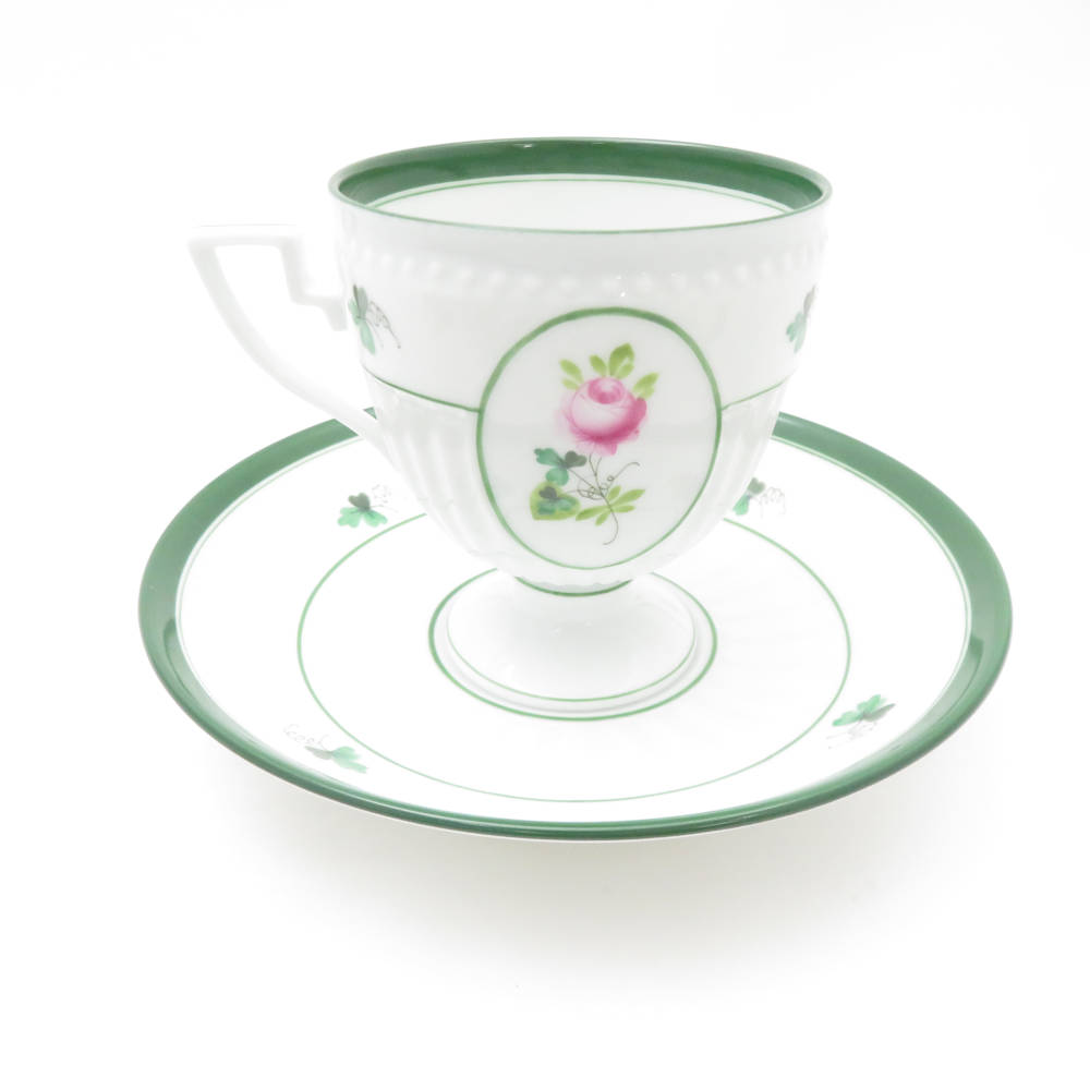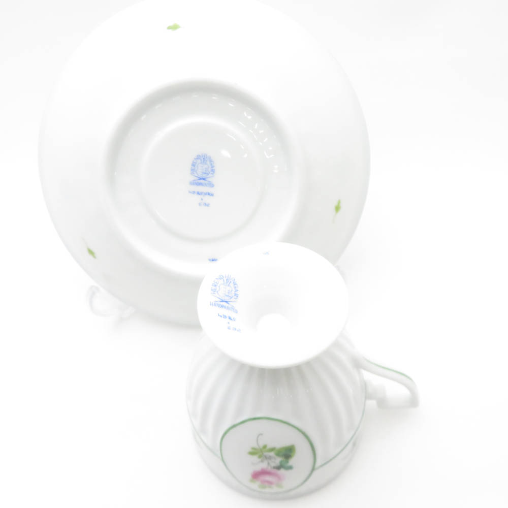 美品 Herend ヘレンド ウィーンの薔薇 4985 VRH アンピールカップ&ソーサー 1客 バラ チョコレート レア 希少 SY12582H1 【中古】