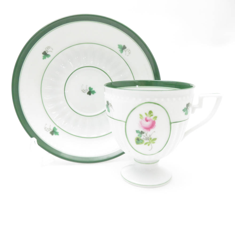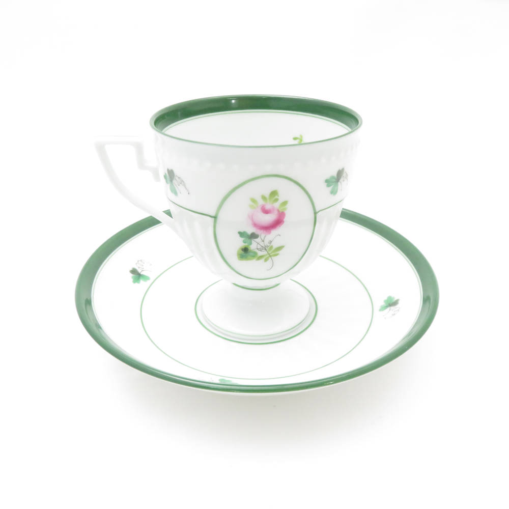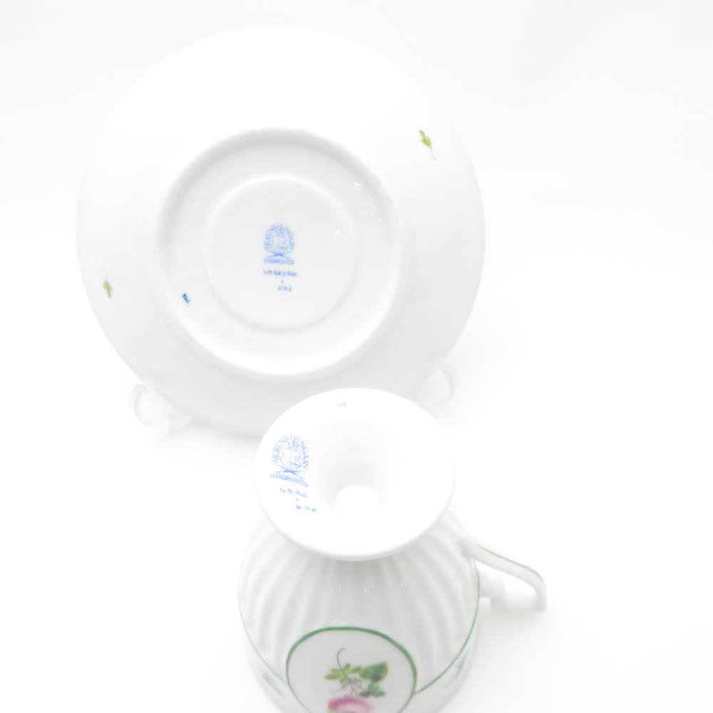 美品 Herend ヘレンド ウィーンの薔薇 4985 VRH アンピールカップ&ソーサー 1客 バラ チョコレート レア 希少 SY12585H1 【中古】