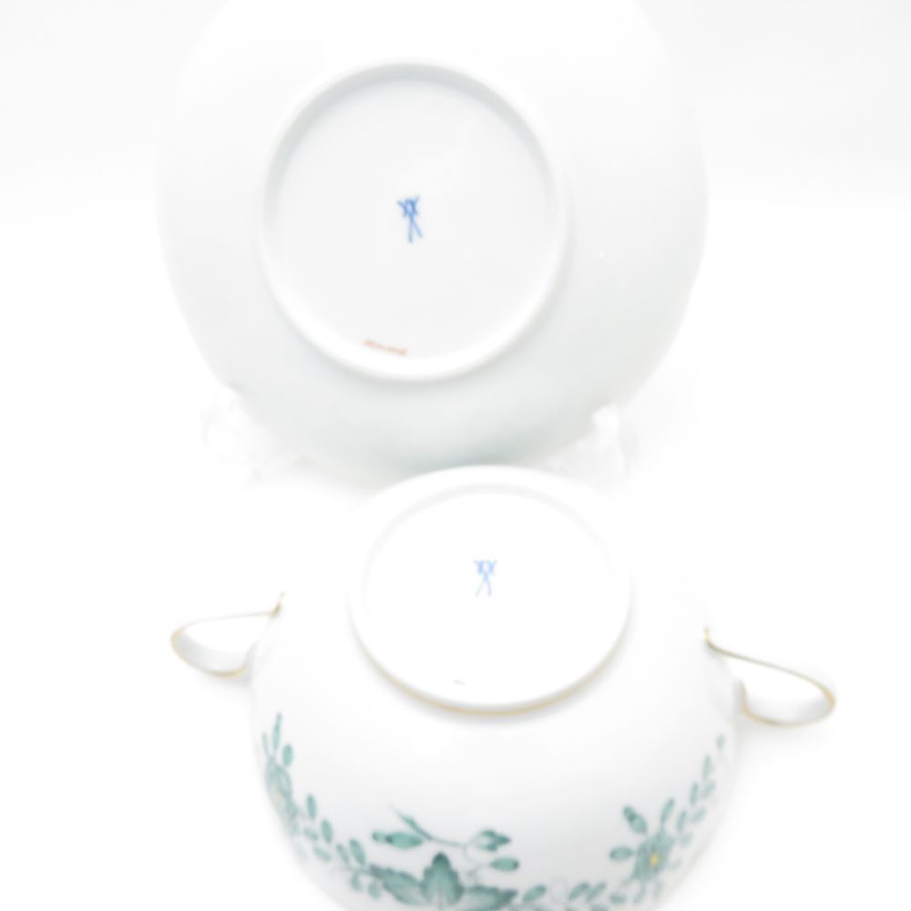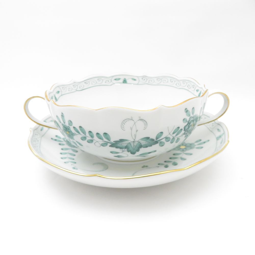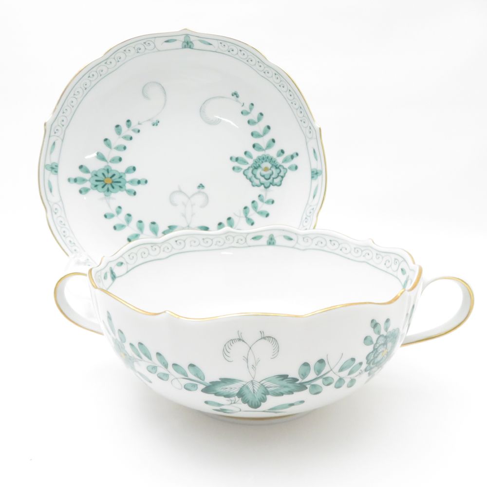 美品 MEISSEN マイセン インドの華 340310 スープカップ&ソーサー 1客 希少 レア インディアンミドルグリーン SC7805D1 【中古】