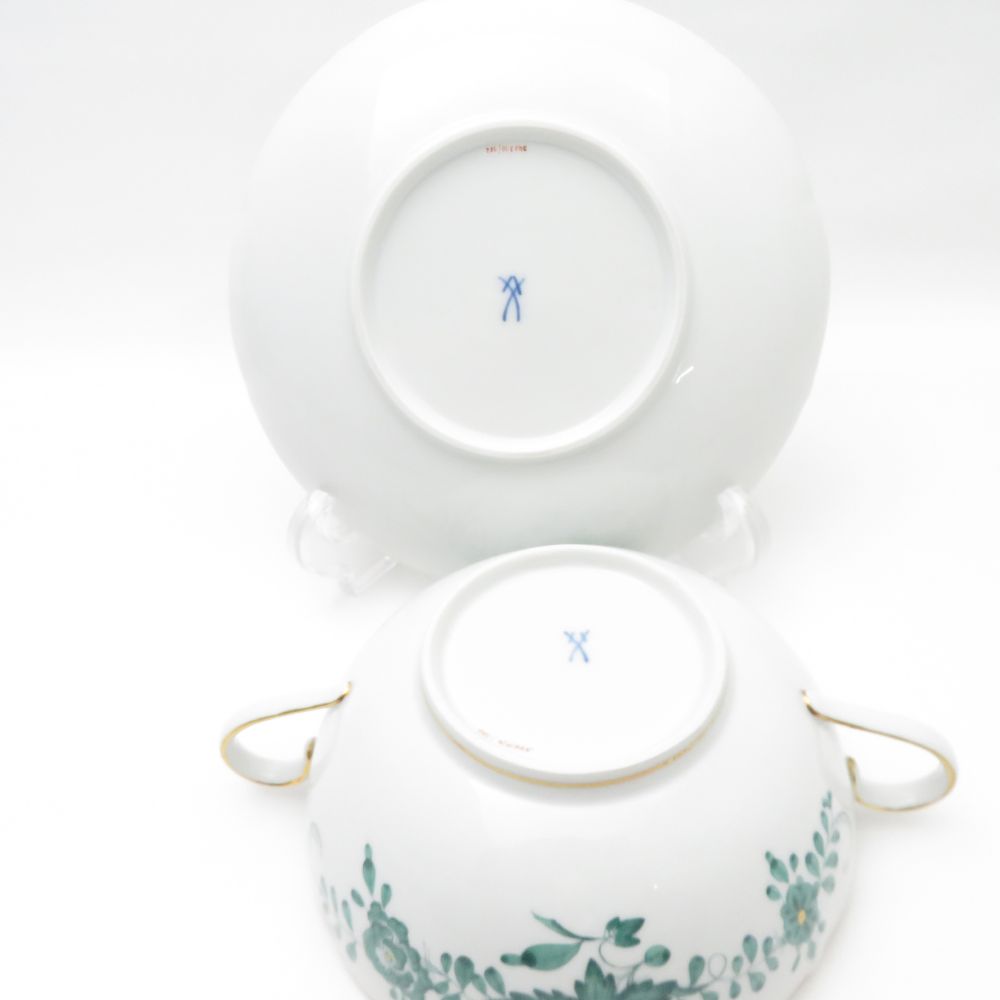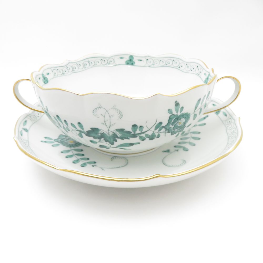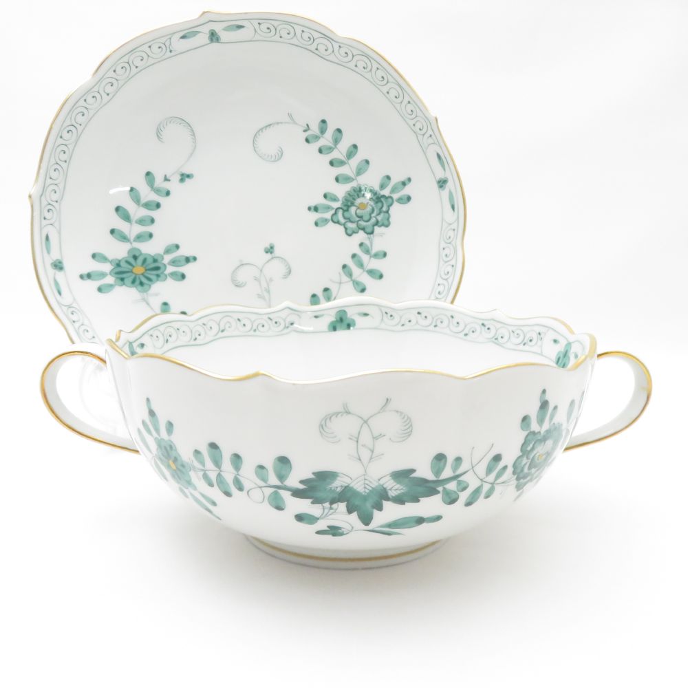 美品 MEISSEN マイセン インドの華 340310 スープカップ&ソーサー 1客 希少 レア インディアンミドルグリーン SC7806D1 【中古】