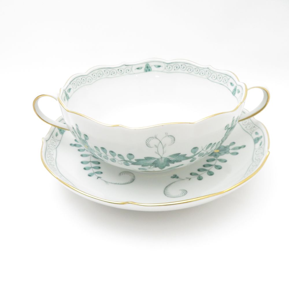 美品 MEISSEN マイセン インドの華 340310 スープカップ&ソーサー 1客 希少 レア インディアンミドルグリーン SC7808D1 【中古】