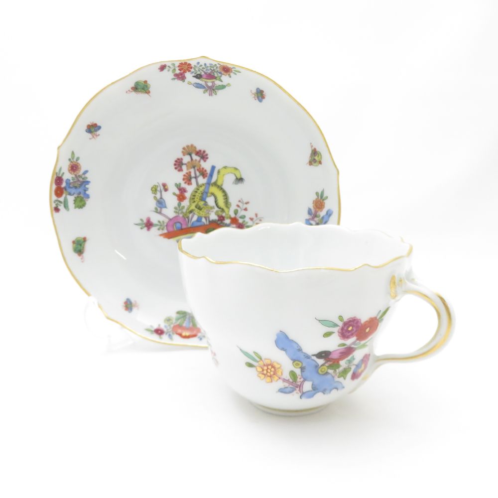 MEISSEN マイセン 竹虎 ティーカップ&ソーサー 柿右衛門 シノワズリ レア 希少 SY12648L2 【中古】