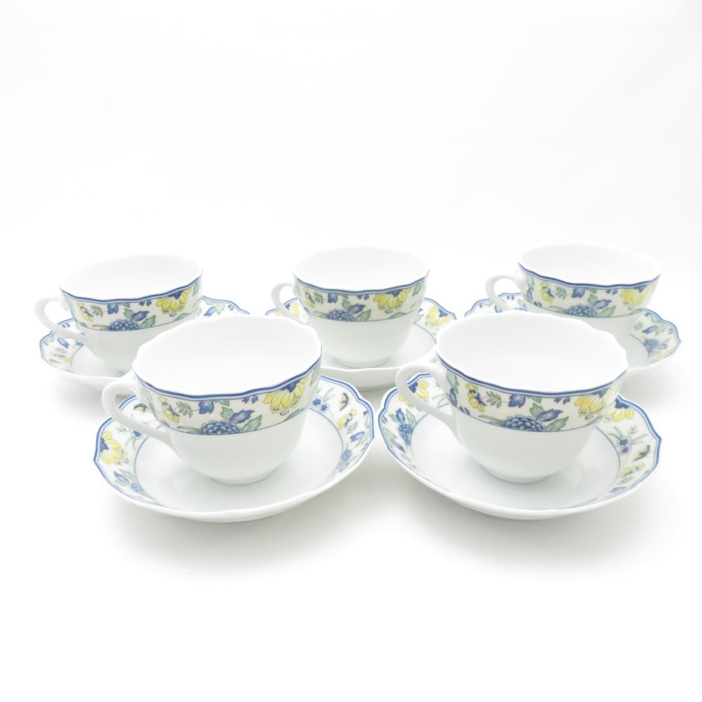 美品 HUTSCHENREUTHER フッチェンロイター パピヨン カップ&ソーサー 5客 セット ティー コーヒー 蝶 花柄 フラワー SU12408L1 【中古】
