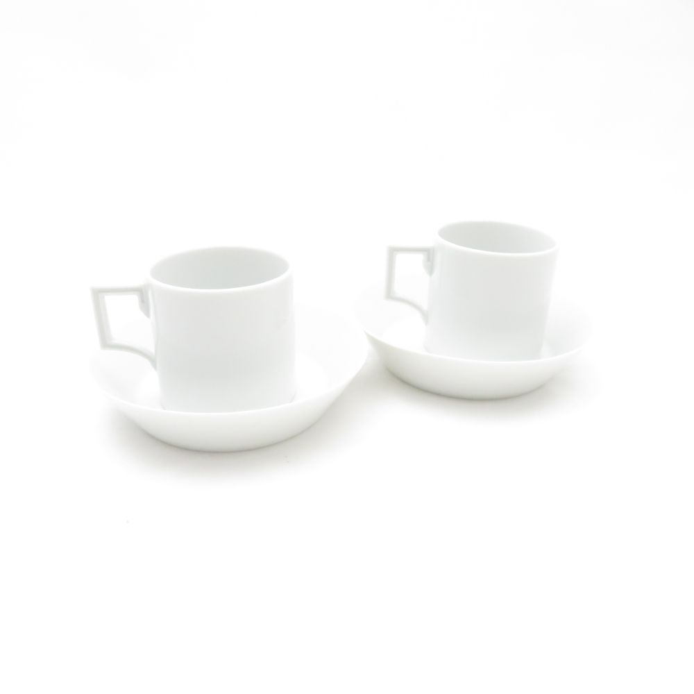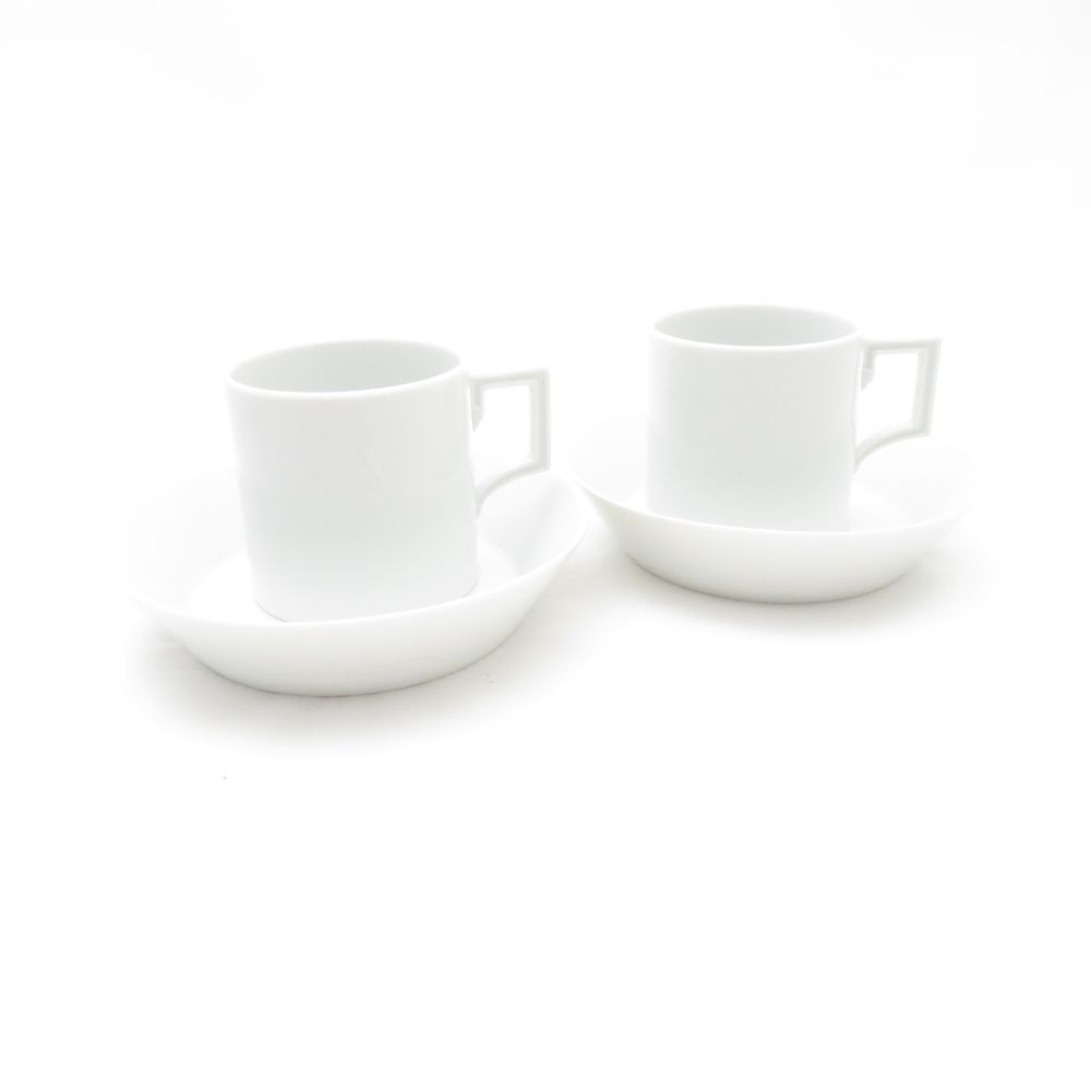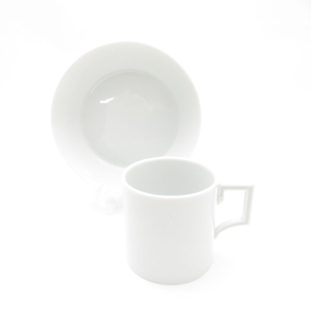 美品 MEISSEN マイセン アレンジメンツ ESSPRESSO DELL'ARTE エスプレッソカップ&ソーサー 2客 ペア デミタス コーヒー 双剣マーク 白磁 SU12618H1 【中古】