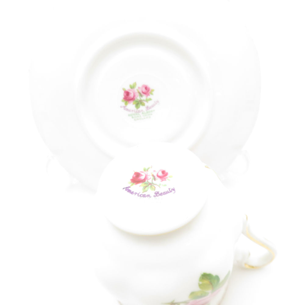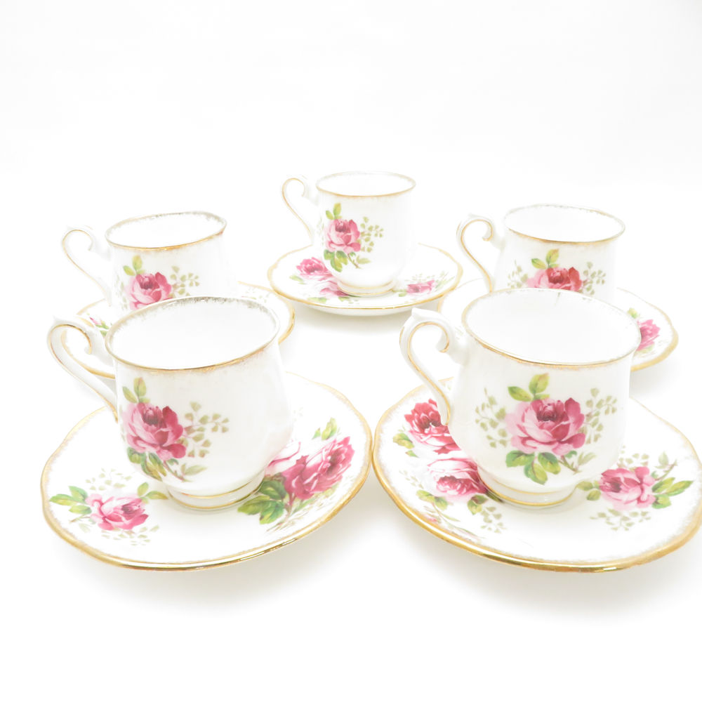 美品 ROYAL ALBERT ロイヤルアルバート アメリカンビューティー デミタスカップ&ソーサー 5客 セット コーヒー 金彩 薔薇 レア 希少 SU12523K1 【中古】