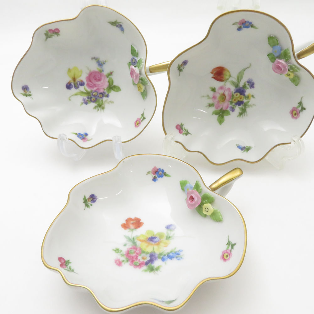 美品 Lindner リンドナー リーフトレイ 3枚 プレートセット 葉っぱ皿 金彩 花柄 SU12537K1 【中古】
