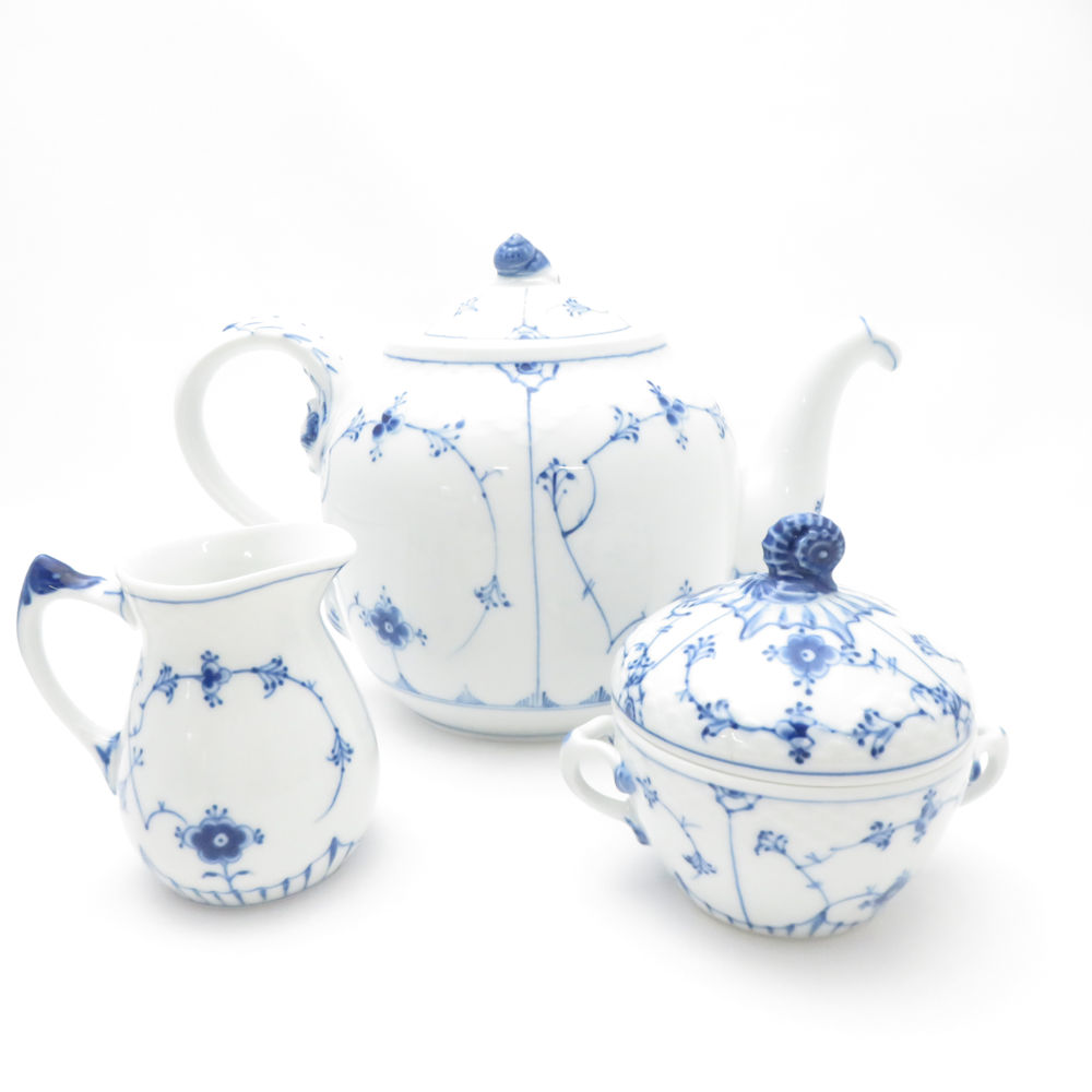B&G ビングオーグレンダール ブルートラディショナル ティーポット クリーマー シュガー 3点 セット 茶器 クリーム ミルク 砂糖 SU12731J2 【中古】