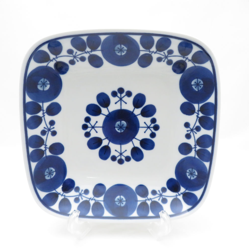 HAKUSAN JAPAN 白山陶器 BLOOM ブルーム リース スクエアディッシュ 2枚 L ペア 21cmプレート 波佐見焼 花 白 青 SU12879E2 【中古】