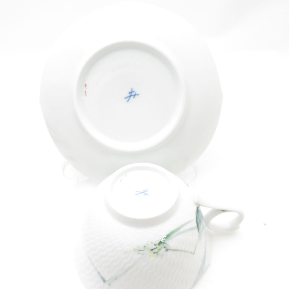 美品 MEISSEN マイセン 森の声 614501 ティーカップ&ソーサー 2客 ペア SC8468A2 【中古】