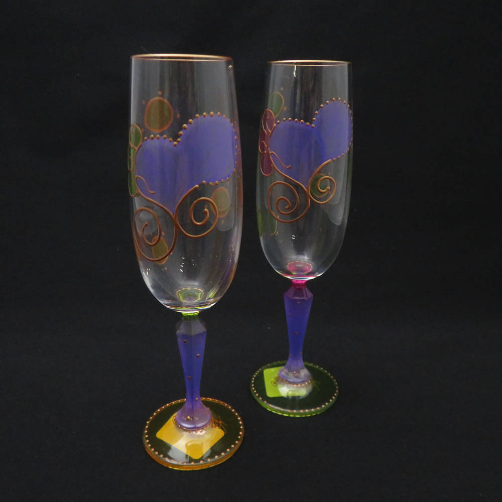 - ハンドペイント ペア フルート ハート ラブリー 手描き