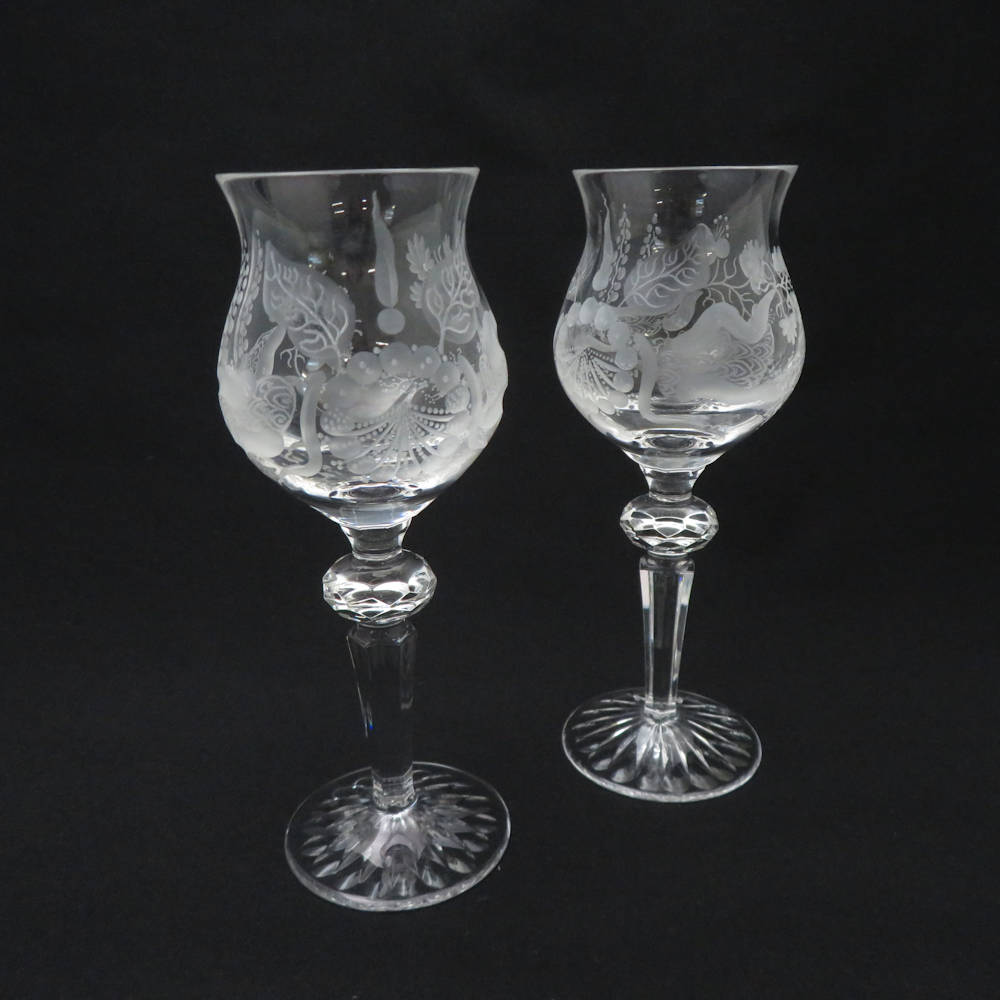 Meissen Crystal マイセンクリスタル ブルーオーキッド ワイングラス 2客 ペア H18.5cm SC8561E1 【中古】