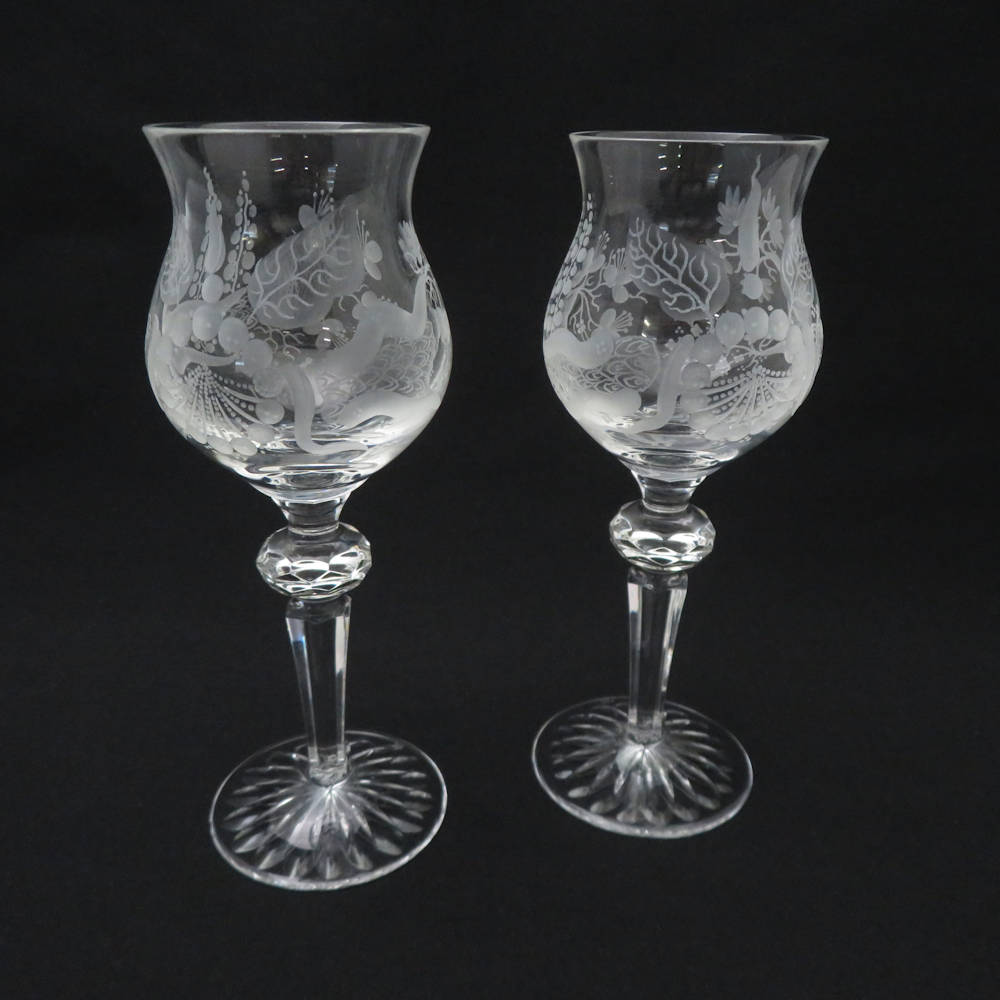 Meissen Crystal マイセンクリスタル ブルーオーキッド ワイングラス 2客 ペア H18.5cm SC8562E1 【中古】