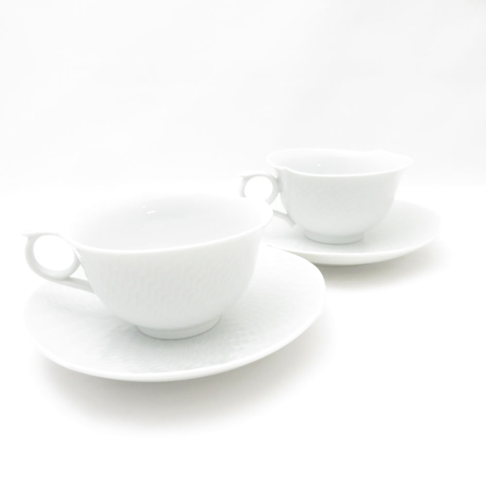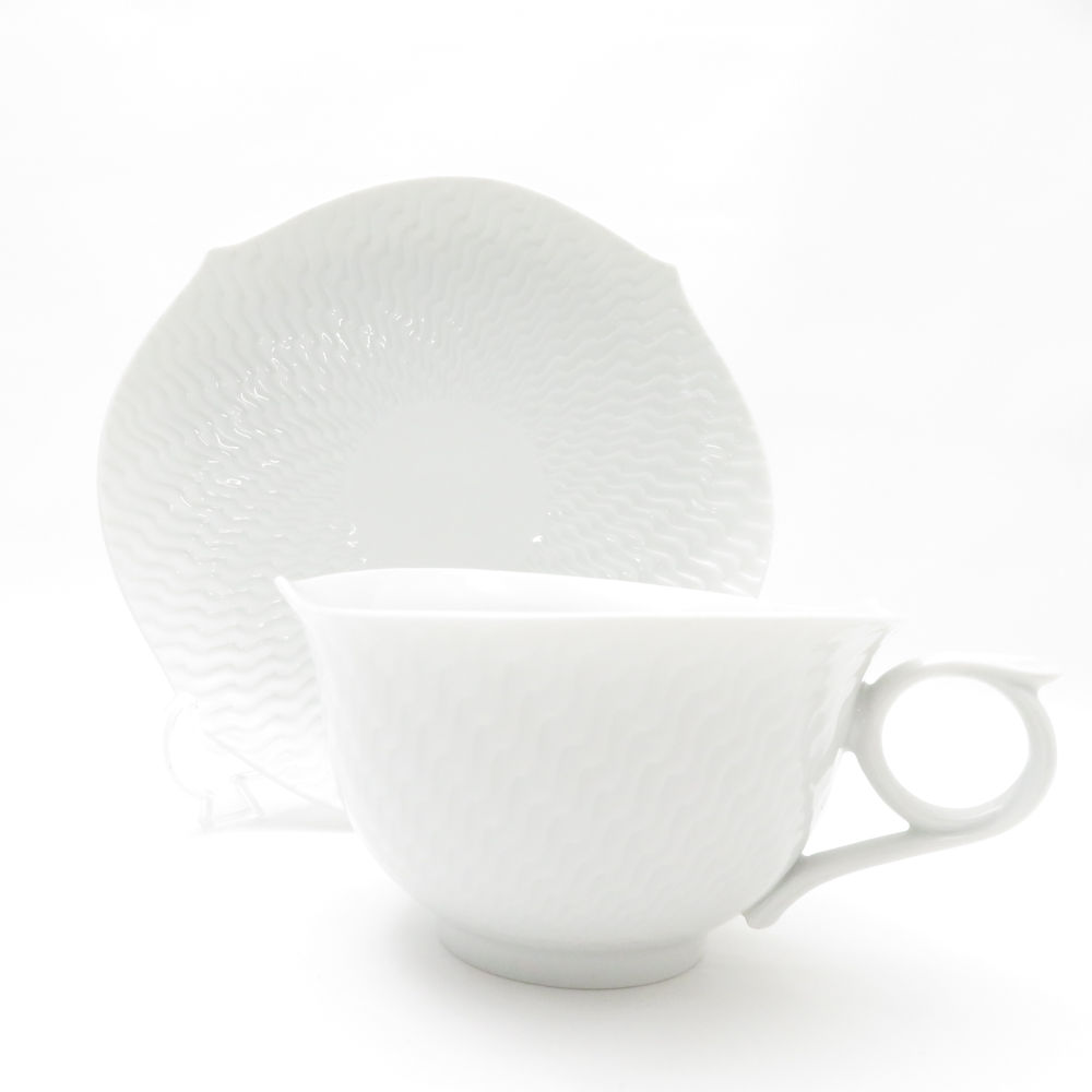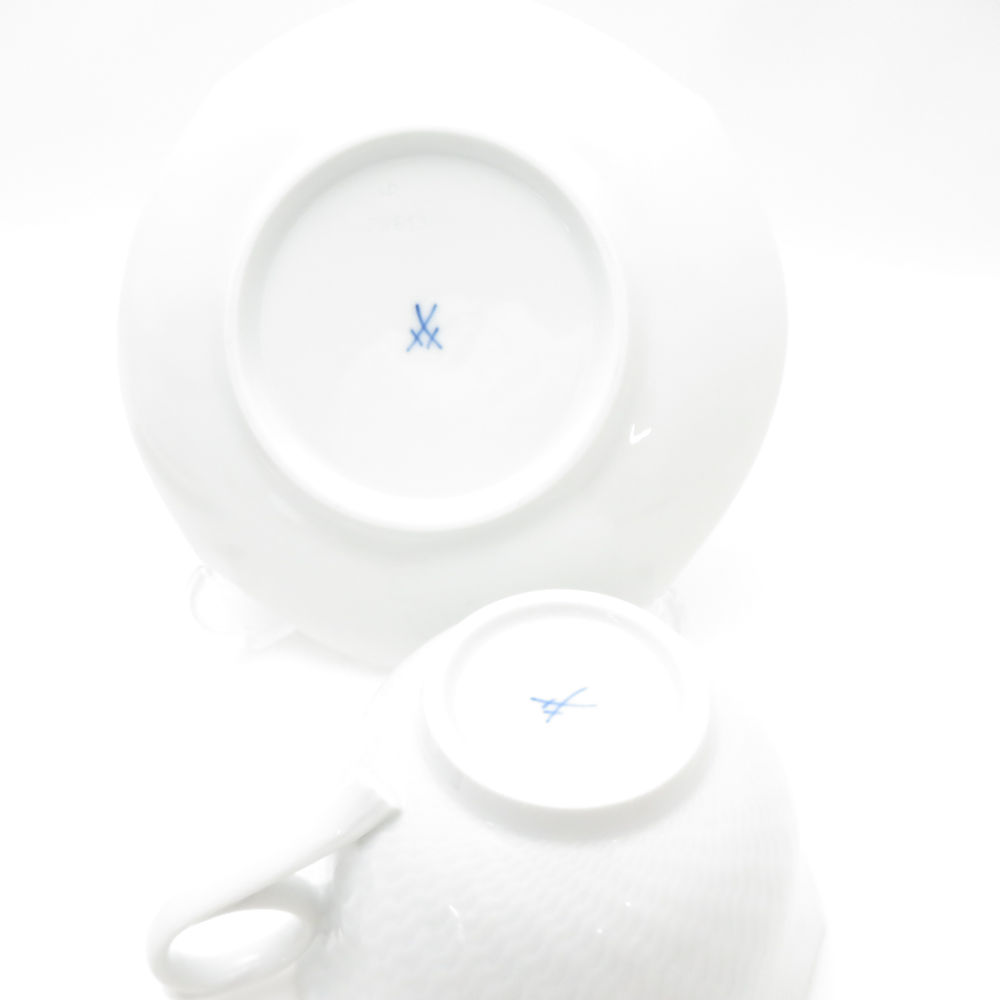 美品 MEISSEN マイセン 波の戯れ ホワイト ティーカップ&ソーサー 2客 ペア SM4377T2 【中古】