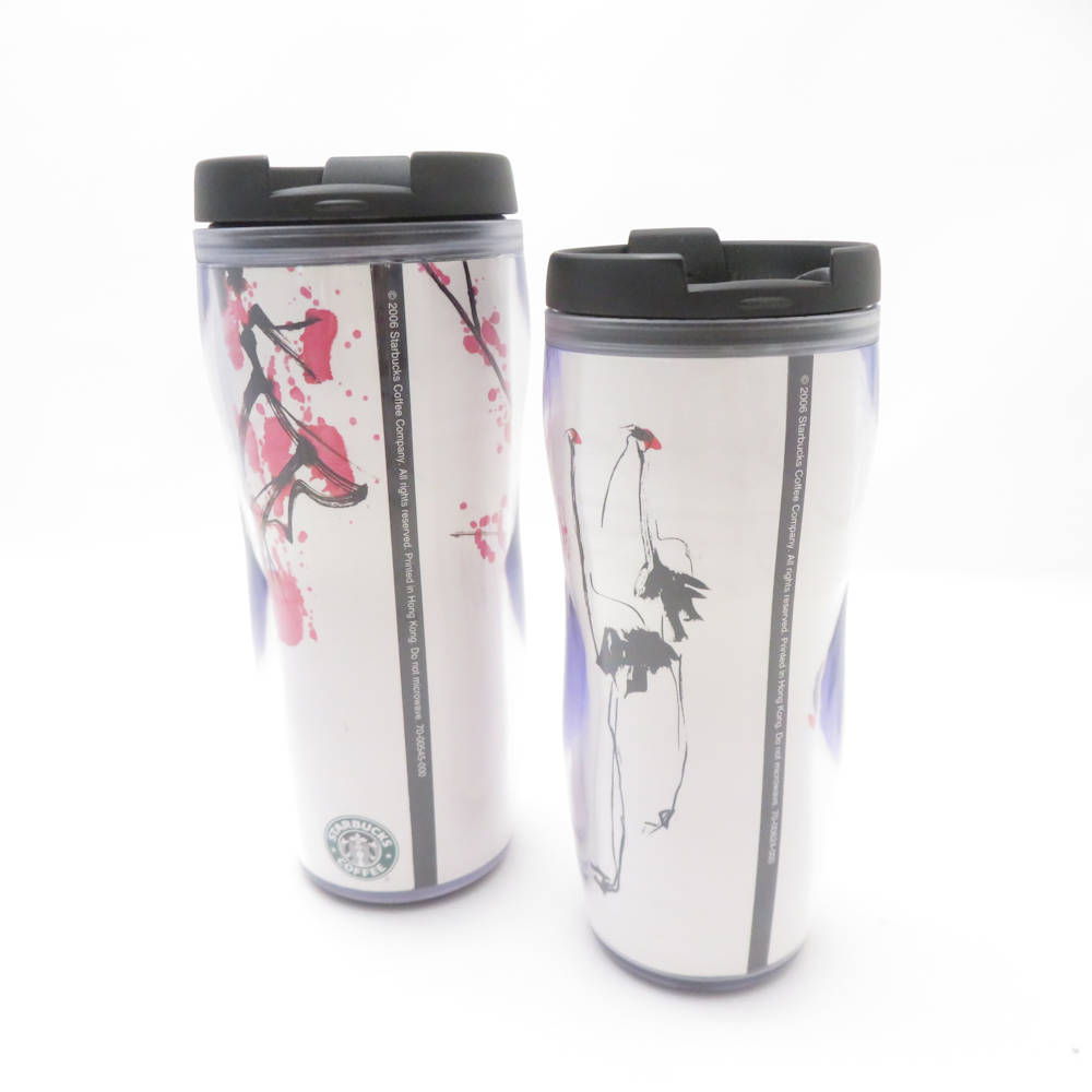 美品 STARBUCKS スターバックス 2007 JAPAN ジャパン タンブラー 2点 セット 旧ロゴ スタバ 鶴 花 SC8758B4 【中古】