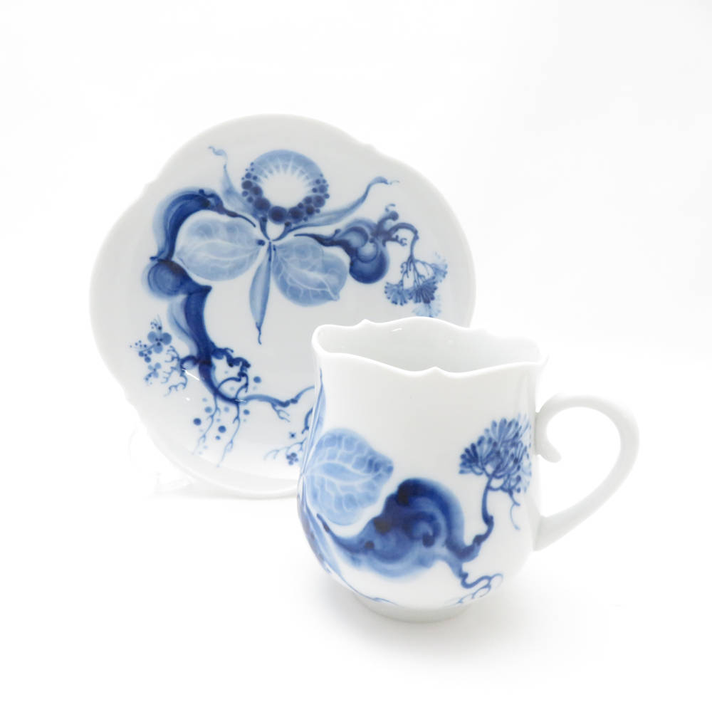 美品 MEISSEN マイセン ブルーオーキッド コーヒーカップ&ソーサー 1客 珈琲 白 青 陶磁器 高級 SC8696C1 【中古】