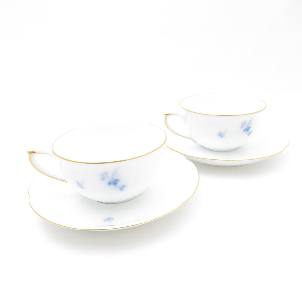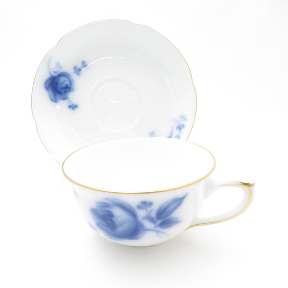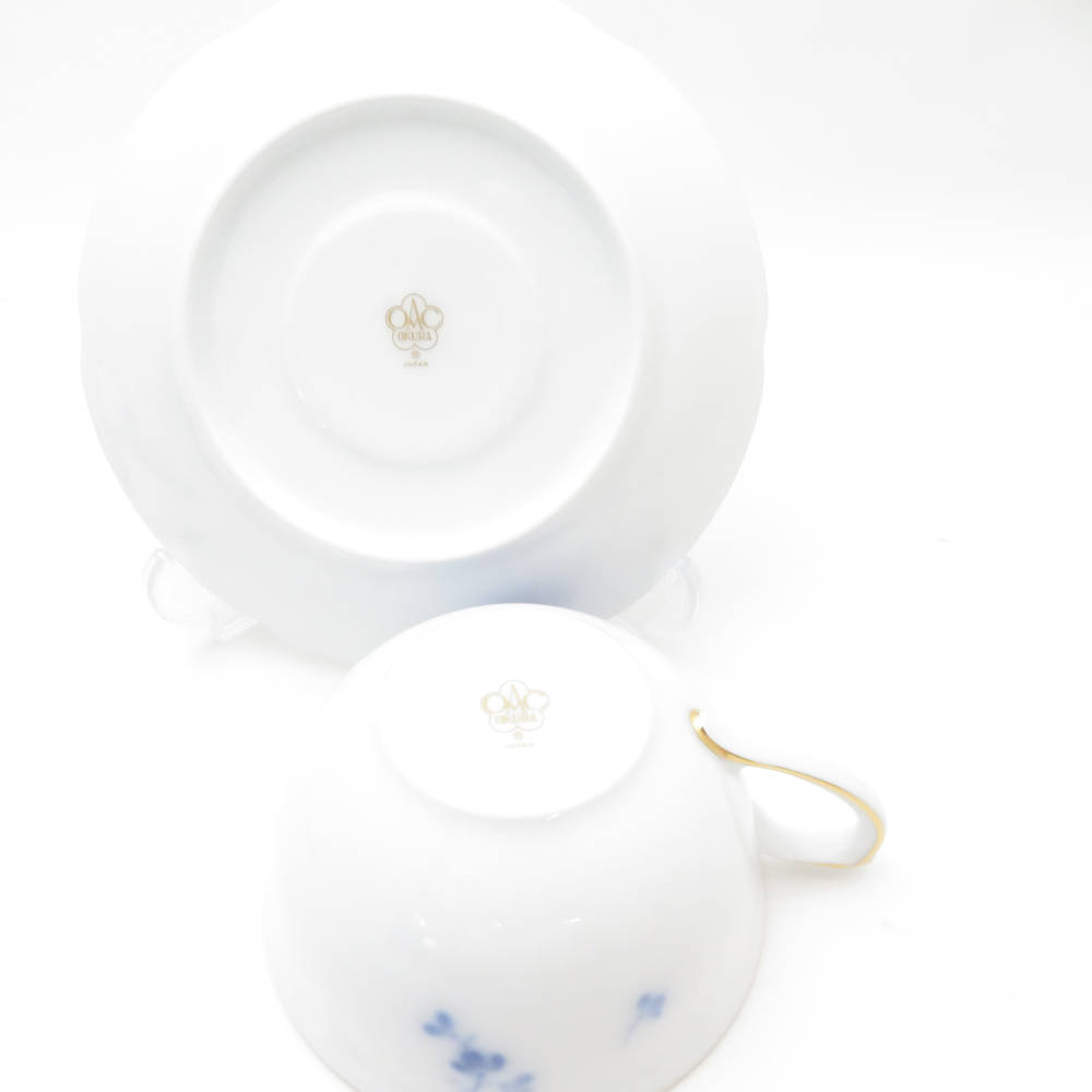 美品 OKURA 大倉陶園 ブルーローズ ティーカップ&ソーサー 2客 ペア SY13106B1 【中古】