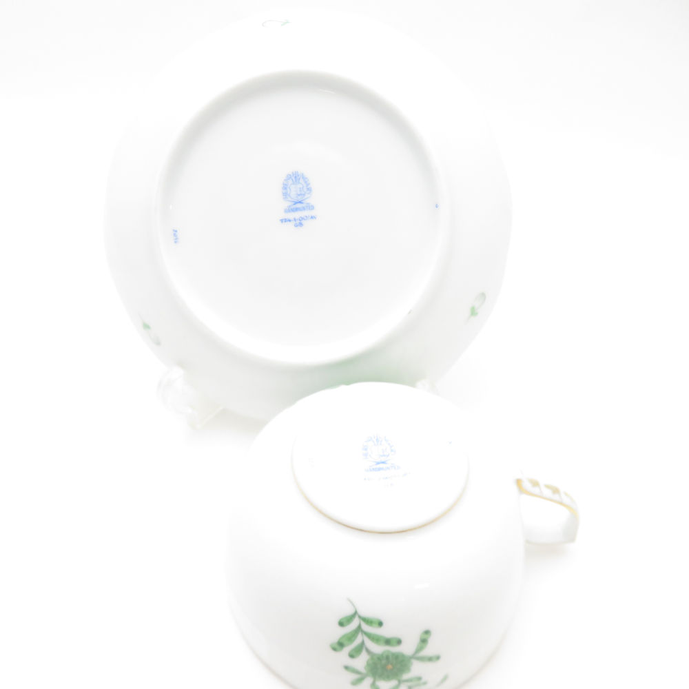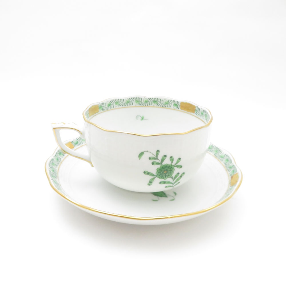 美品 Herend ヘレンド アポニーグリーン AV-JP1 724 ティーカップ&ソーサー SY13221Q1 【中古】