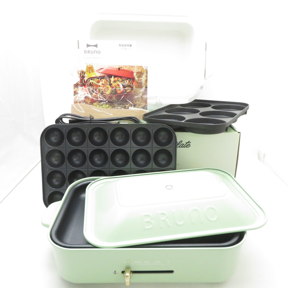 未使用 BRUNO ブルーノ BOE021 コンパクトホットプレート マルチプレート セラミックコート鍋 3点 セット ペールグリーン たこ焼き SD137Z 【中古】